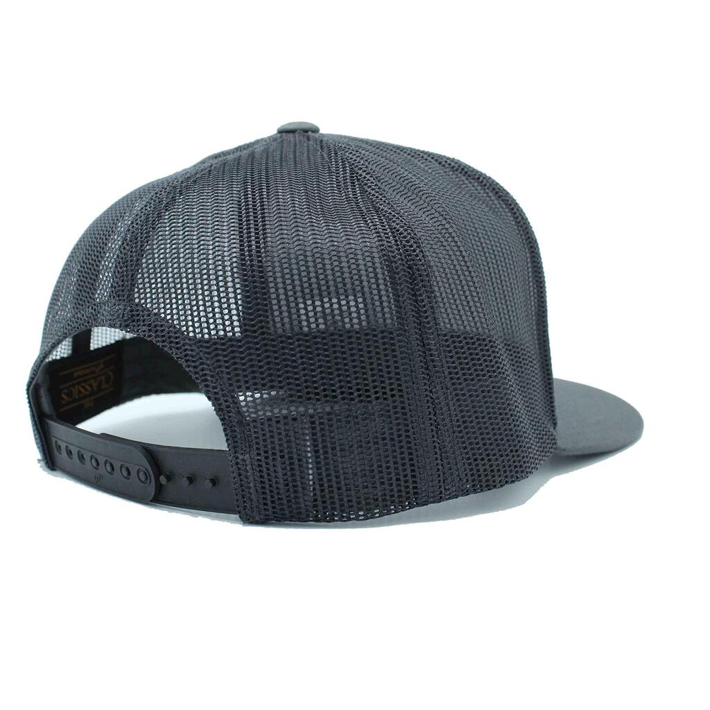 Trucker Cap - Flat Brim - Full Patch / Adult / One Size (Gray/Red)