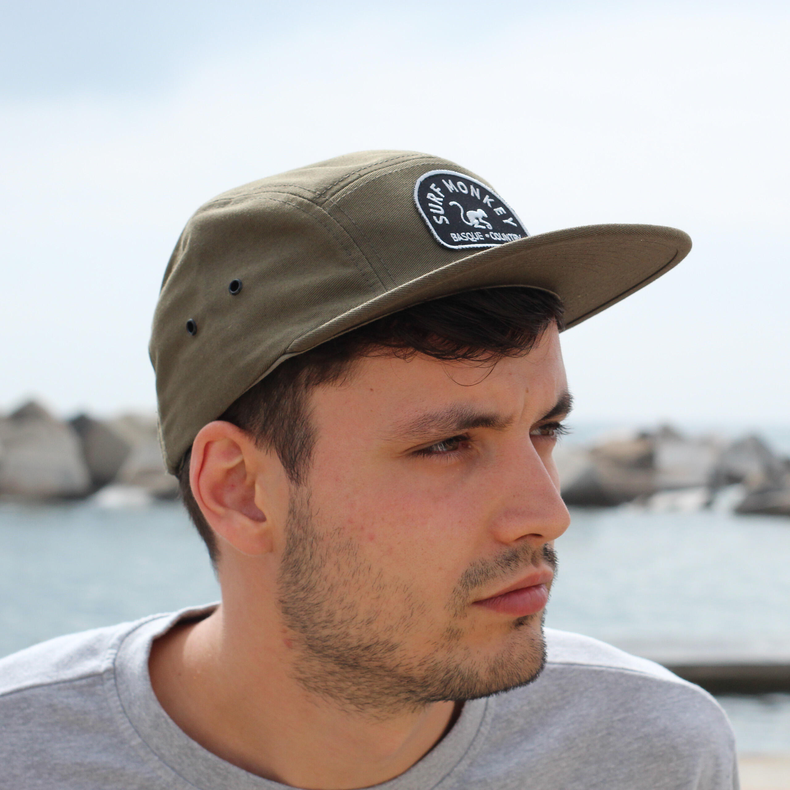 Adjustable Strapback Cap Surf Monkey® One Size (approx. 55-60 cm) / Bill length: 8 cm / Crown height: approx. 10 cm. Adjustable size. Clip closure / Embroidered eyelets. Hand wash.
