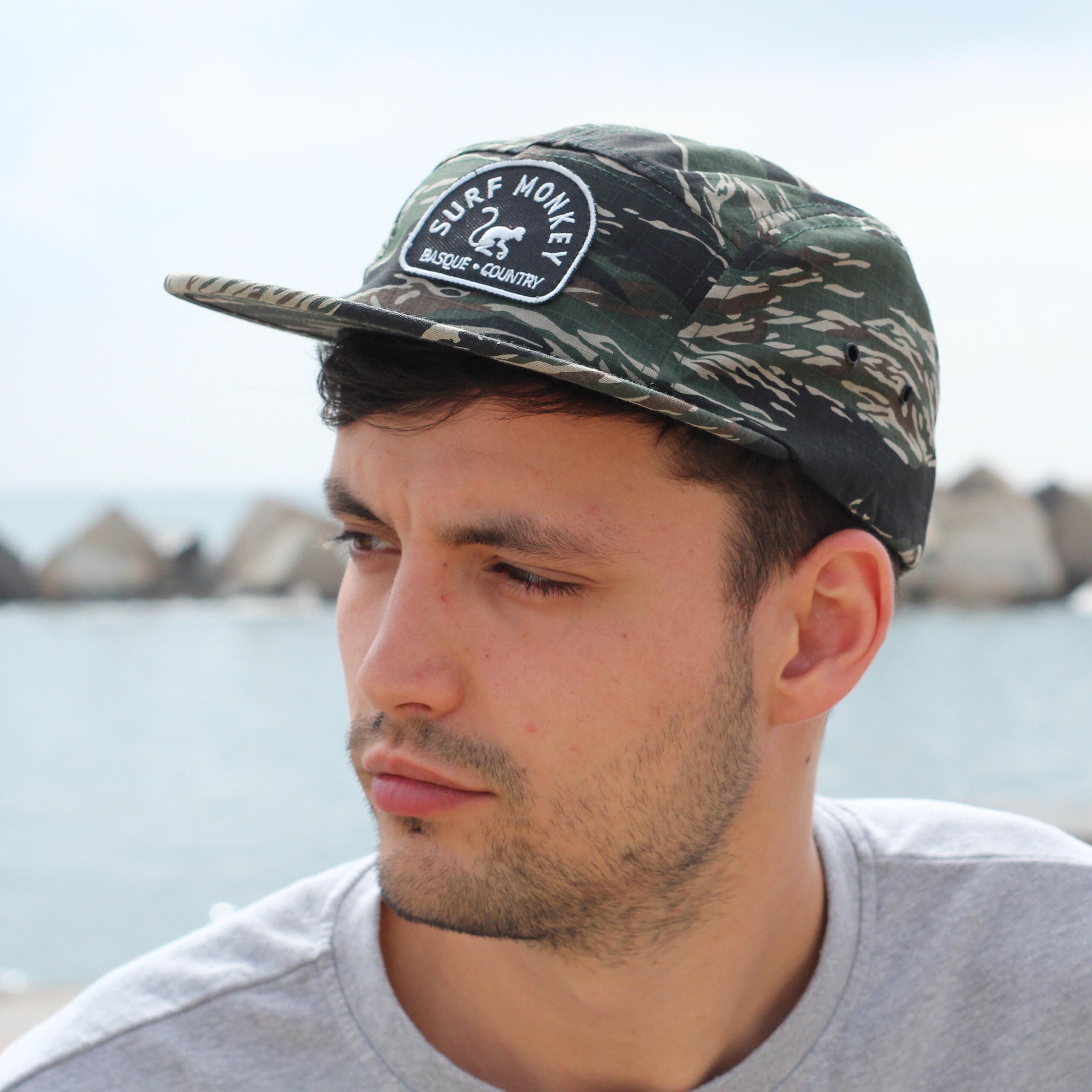 Adjustable Strapback Cap Surf Monkey® One Size (approx. 55-60 cm) / Bill length: 8 cm / Crown height: approx. 10 cm. Adjustable size. Clip closure / Embroidered eyelets. Hand wash.
