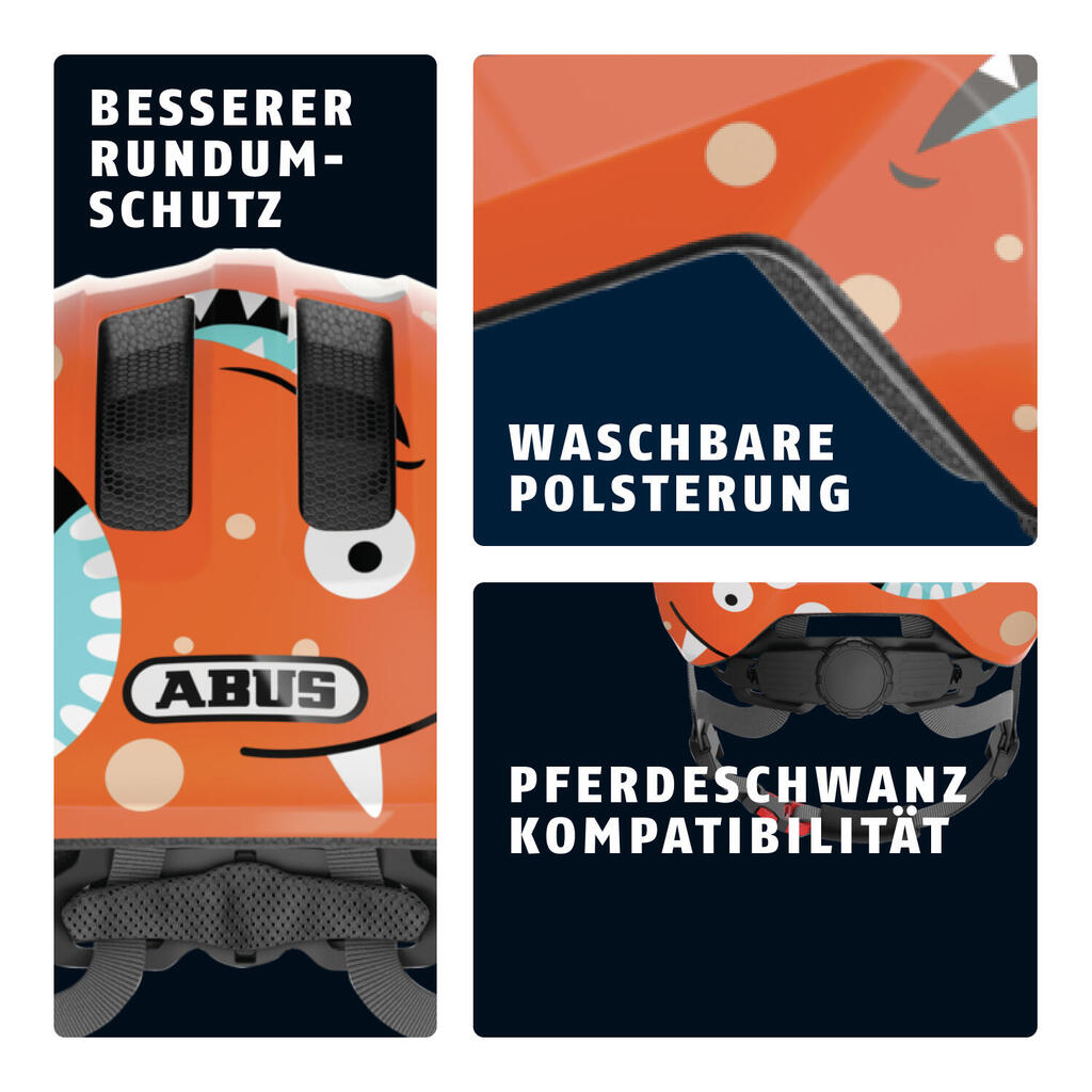 The Abus children's bike helmet offers better protection with its improved design. Wide range of colors to suit everyone. Ideal for first bike rides.