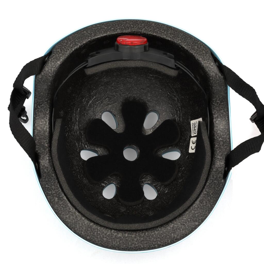 Fun and safe children bike helmet with LED rear light in 3 modes. EN1078 certified, 11 ventilation holes, fully adjustable head dial. Lightweight and comfortable.