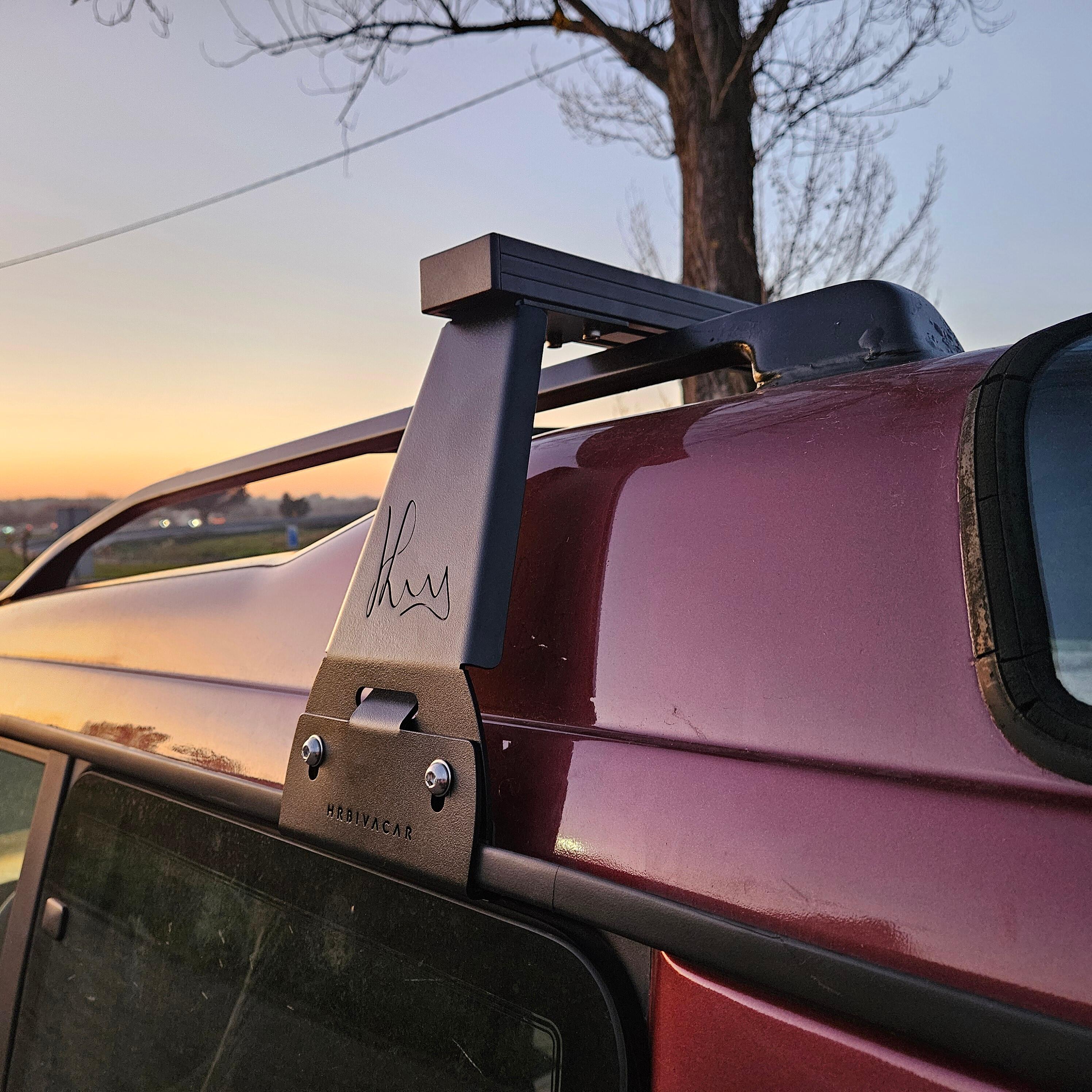 Roof bars made of high-strength aluminum profiles and black lacquered stainless steel supports, easy assembly