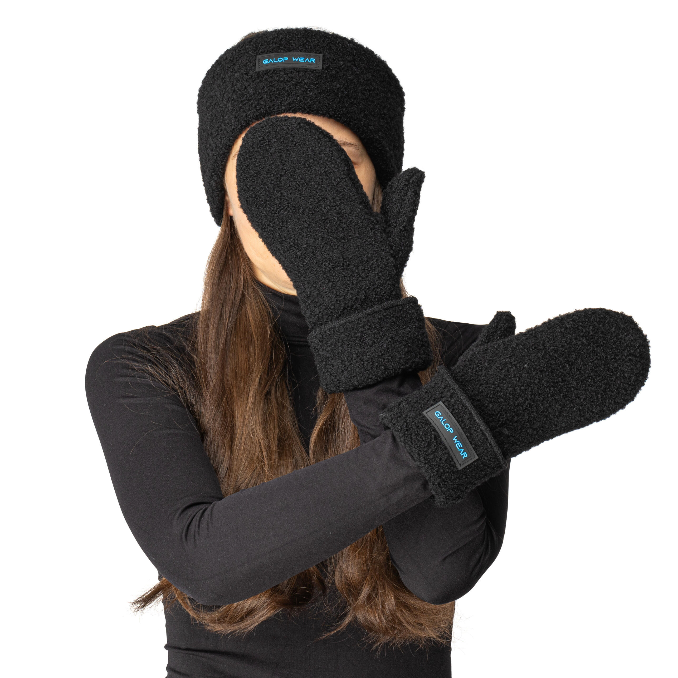 Soft merino wool mittens with a cozy boucle texture, offering warmth, breathability and a comfortable fit for cold days at the stable and outdoors.