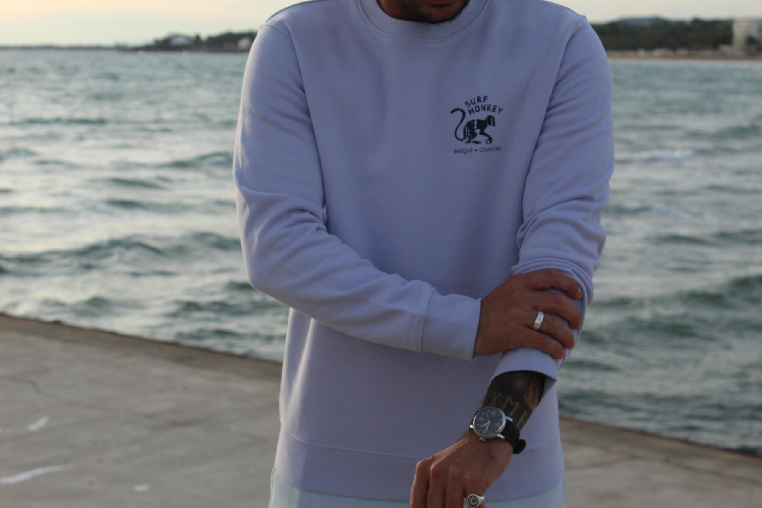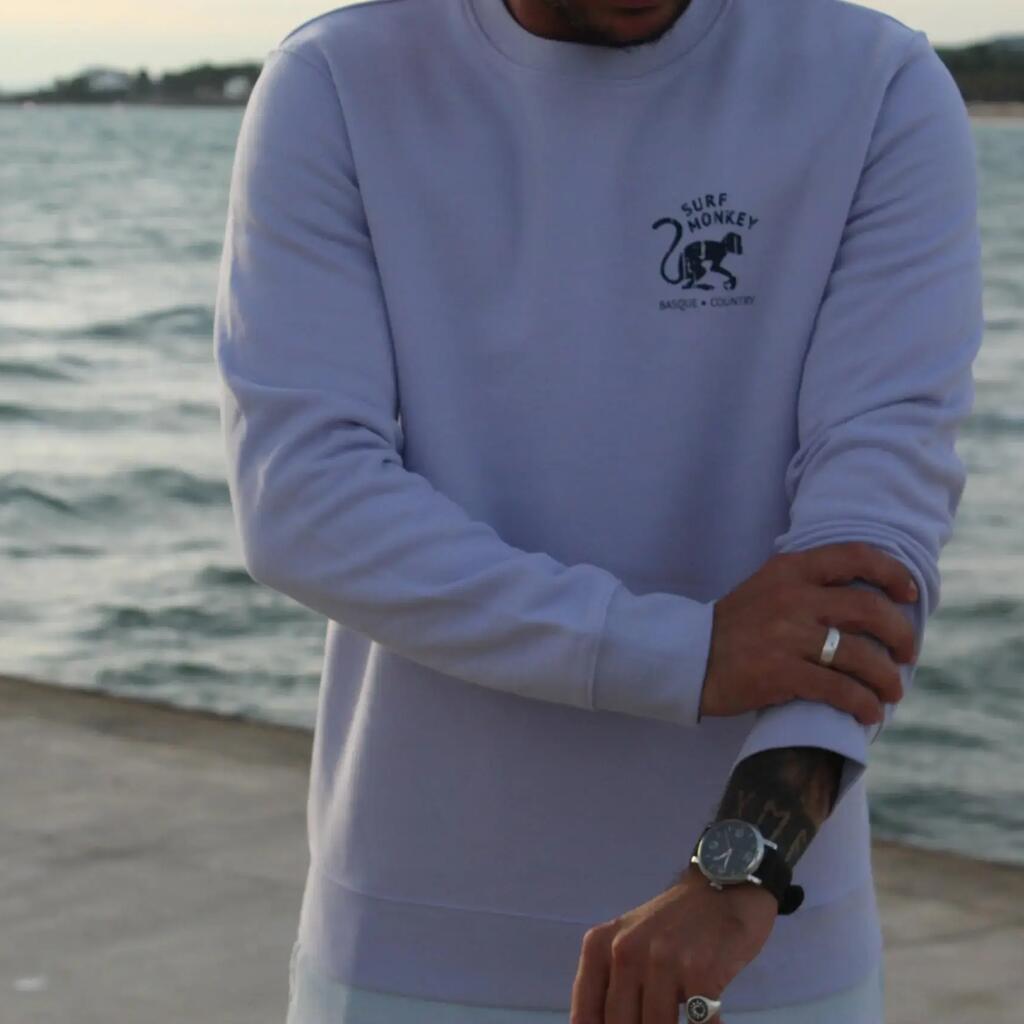 Cotton sweatshirt with GOTS certification issued by Ecocert Greenlife. 85% cotton, 15% recycled polyester.