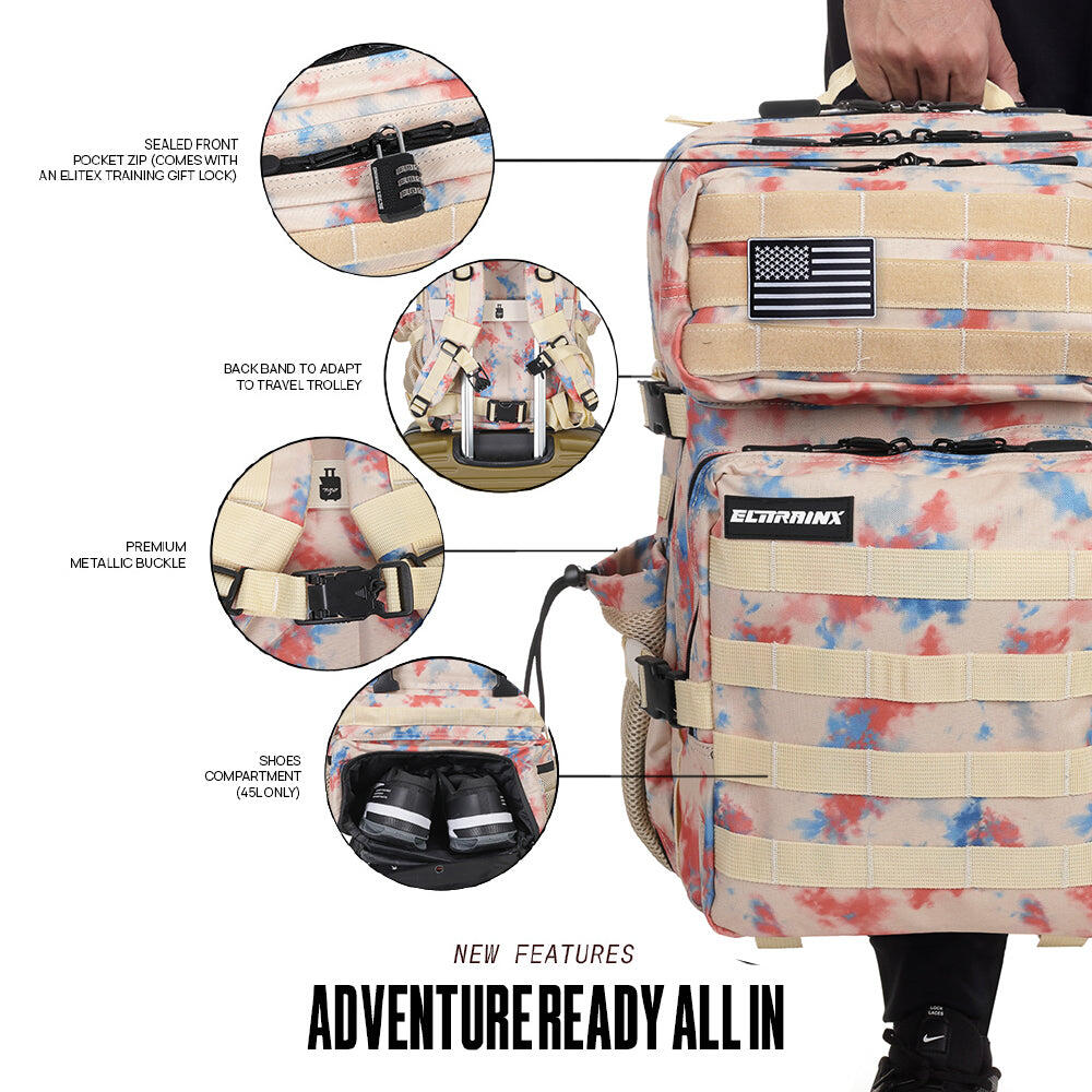 The most popular tactical backpack with 2 side bottle holders and multiple compartments to store clothes, shoes and all your training accessories.