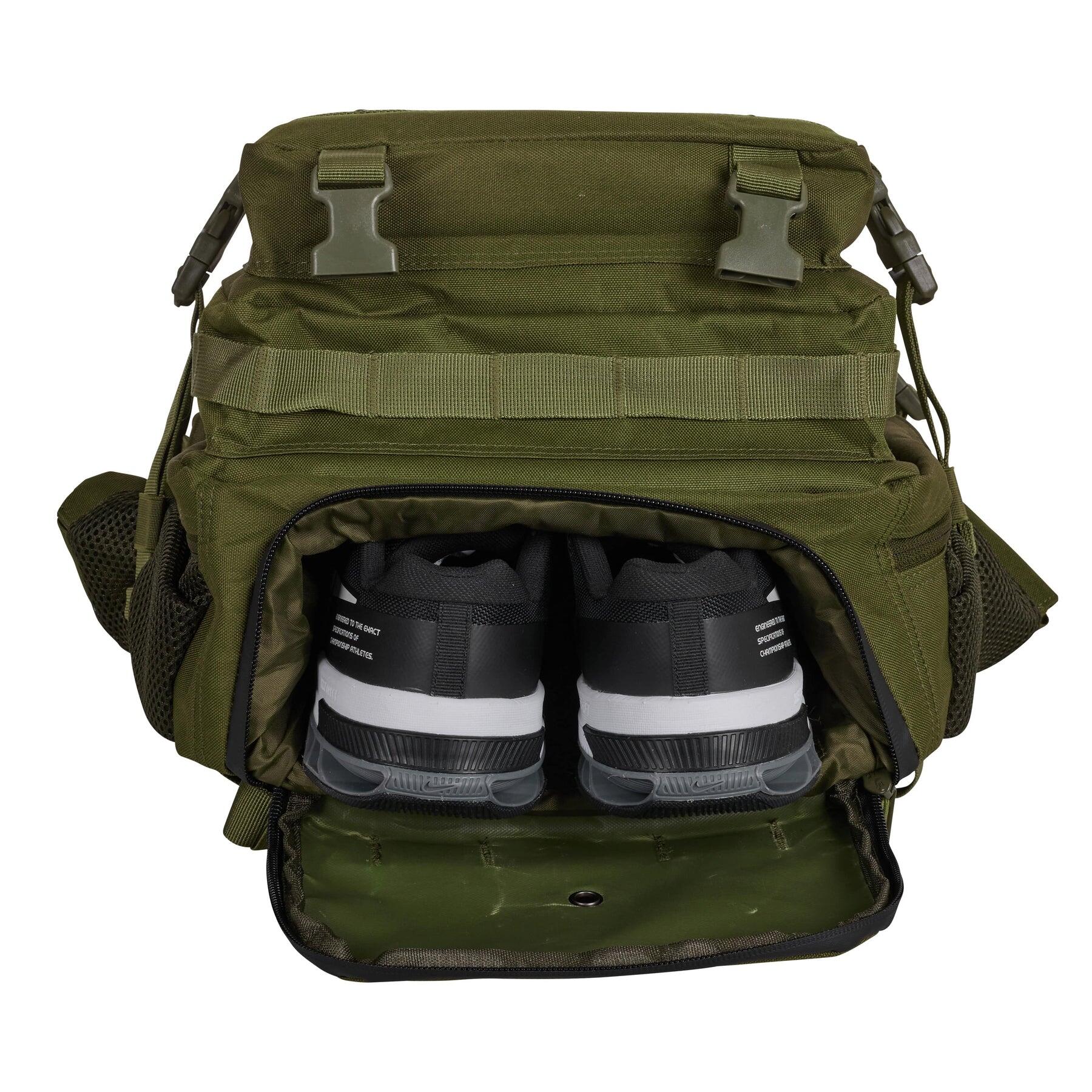 The most popular tactical backpack with 2 side bottle holders and multiple compartments to store clothes, shoes and all your training accessories.
