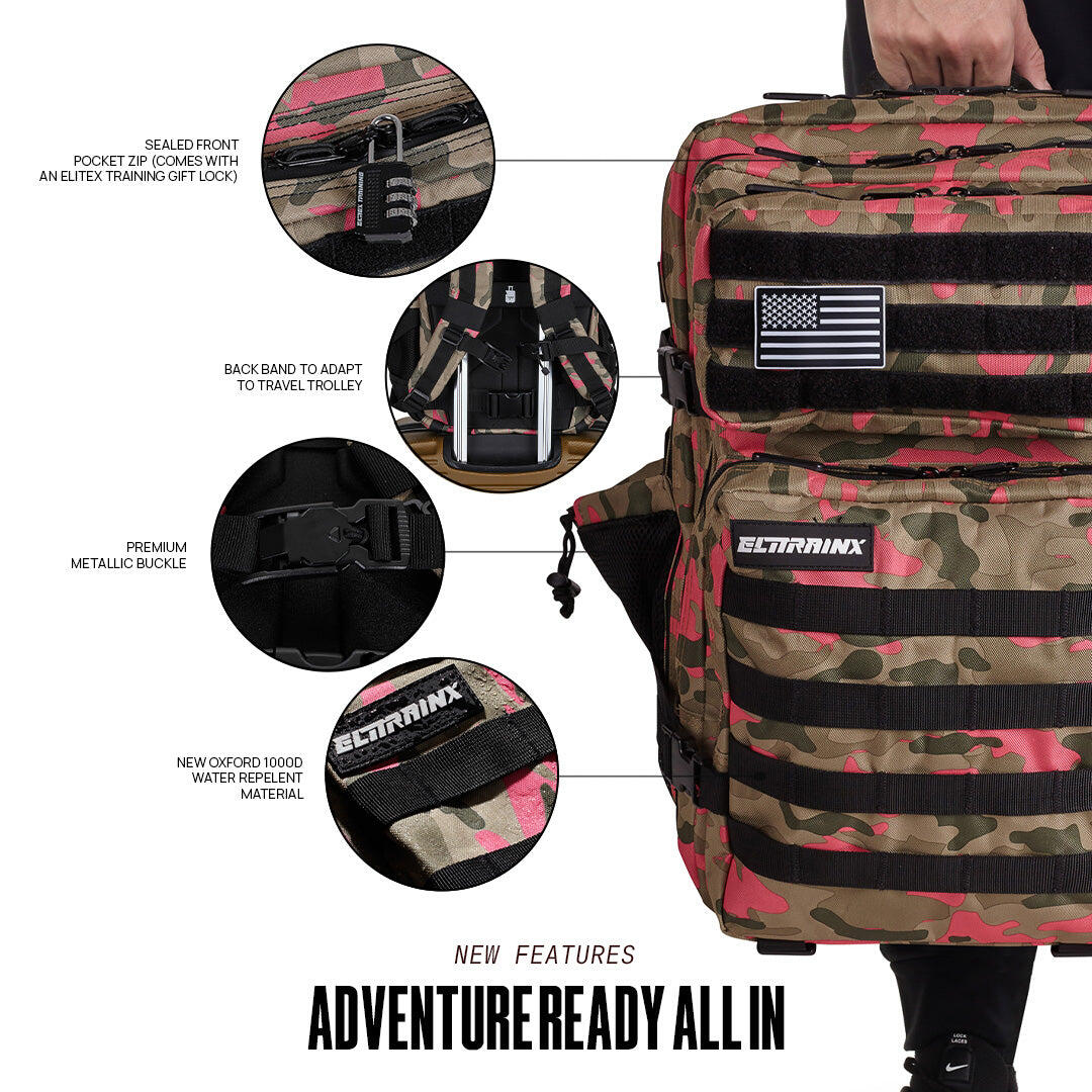 The most popular tactical backpack with 2 side bottle holders and multiple compartments to store clothes, shoes and all your training accessories.