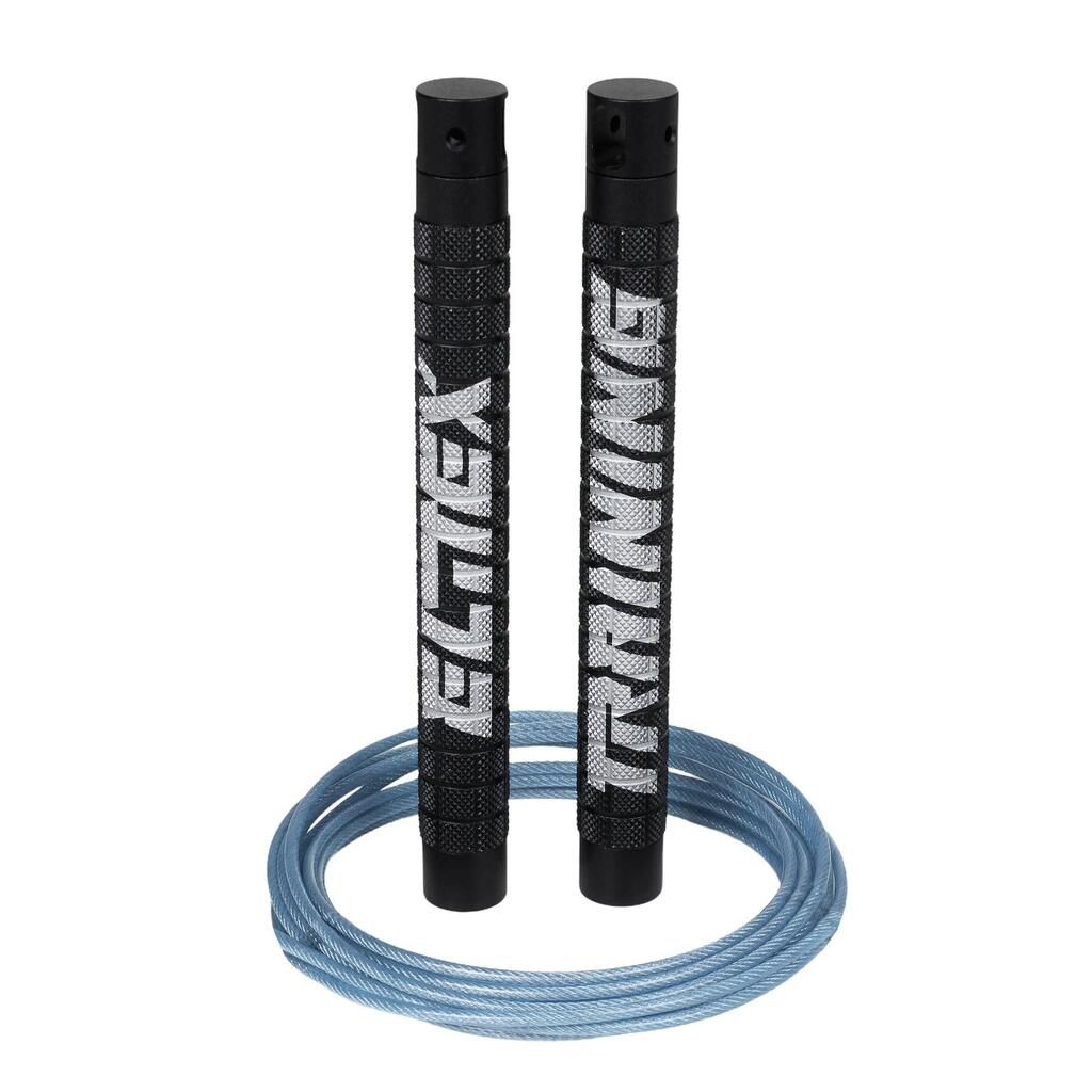 Pro speed jump rope for Cross Training and boxing with high-speed bearings and adjustable weights. Matte finish, smooth rotation and carry case included.