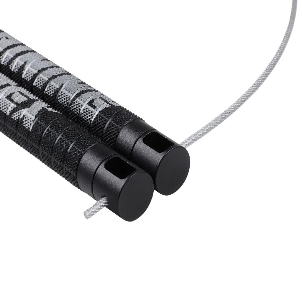 Pro speed jump rope for Cross Training and boxing with high-speed bearings and adjustable weights. Matte finish, smooth rotation and carry case included.