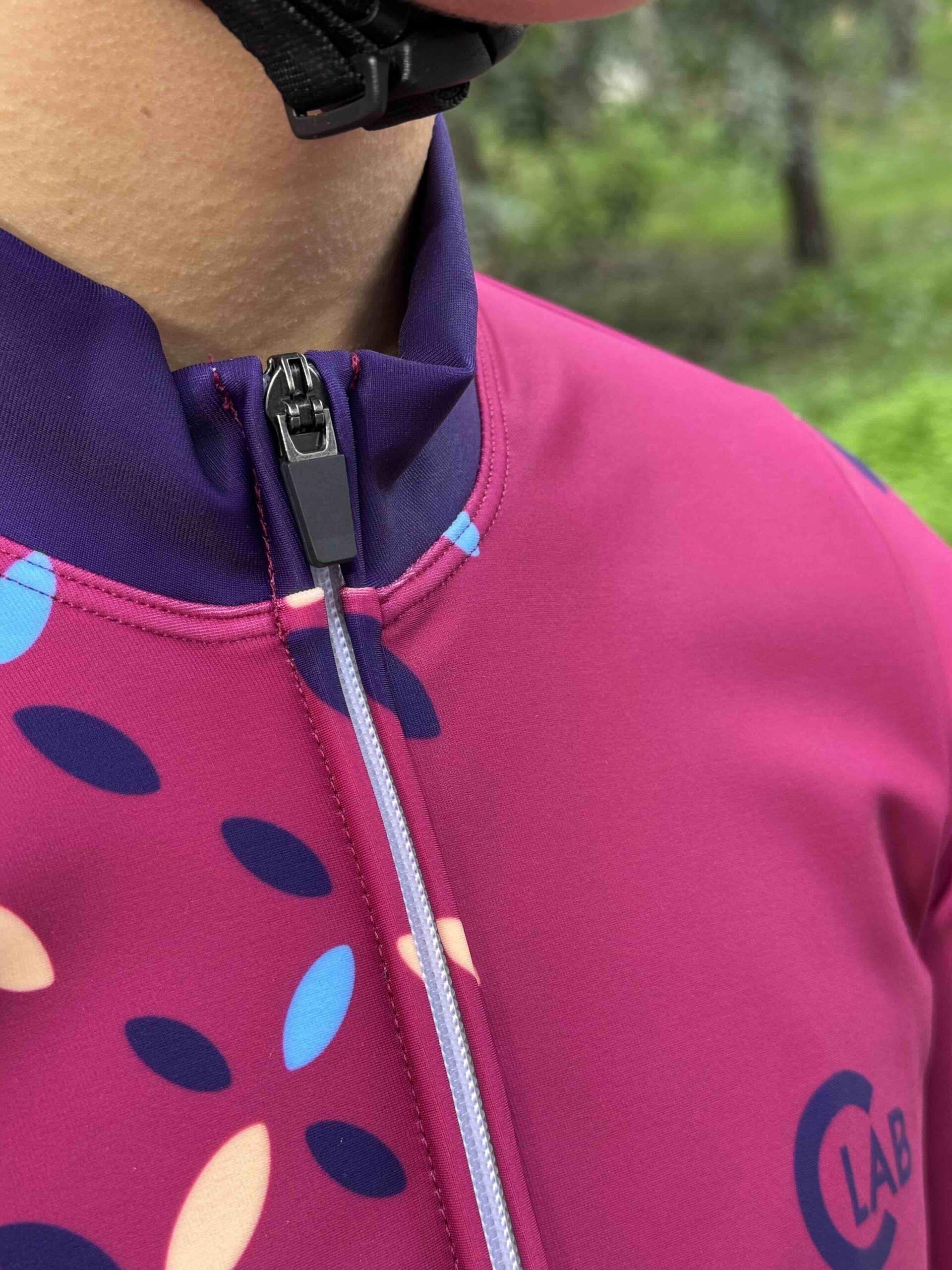 High-end winter cycling jersey for woman, warm and breathable. 4 pockets (1 ziped) on the back. Made in Italy.