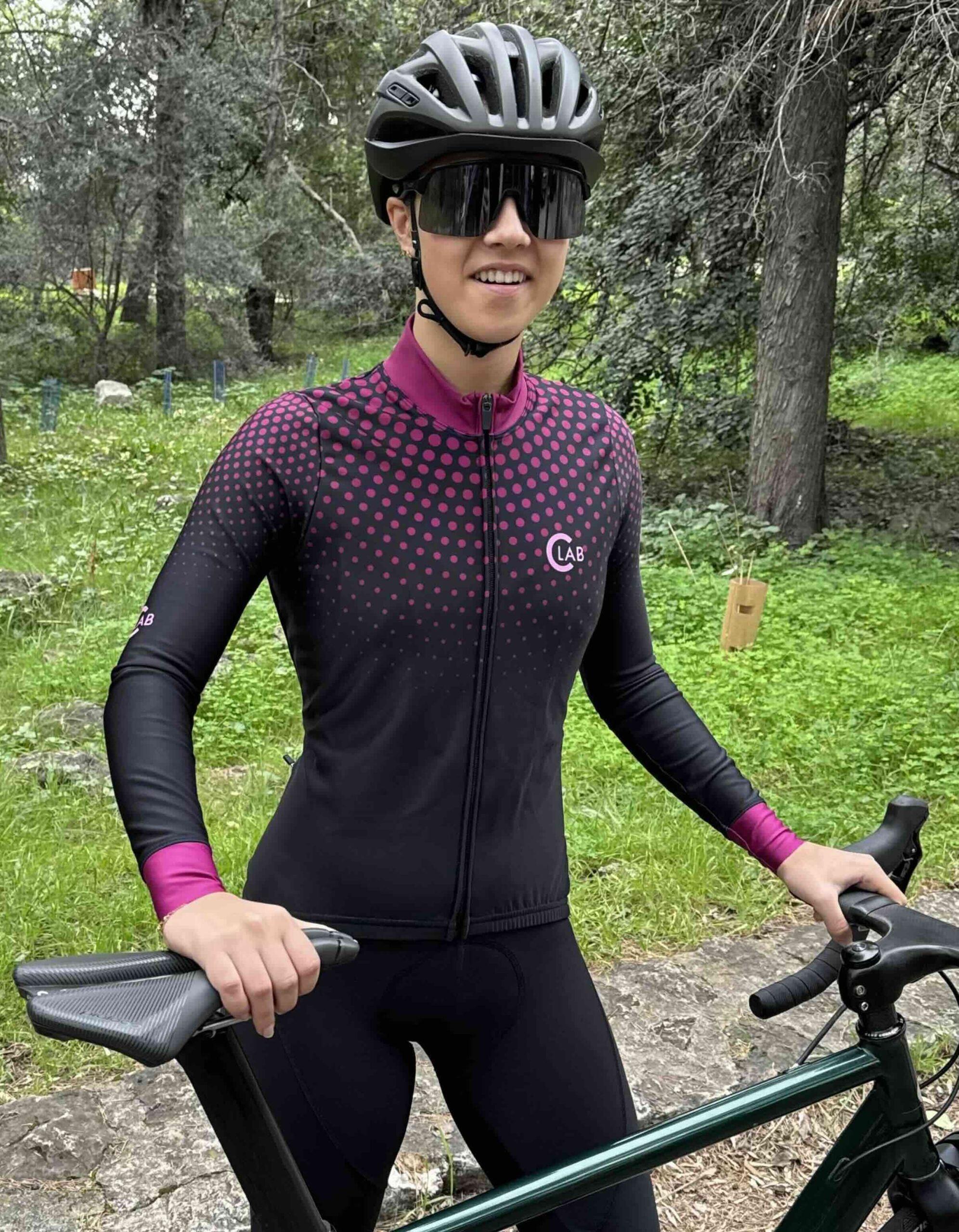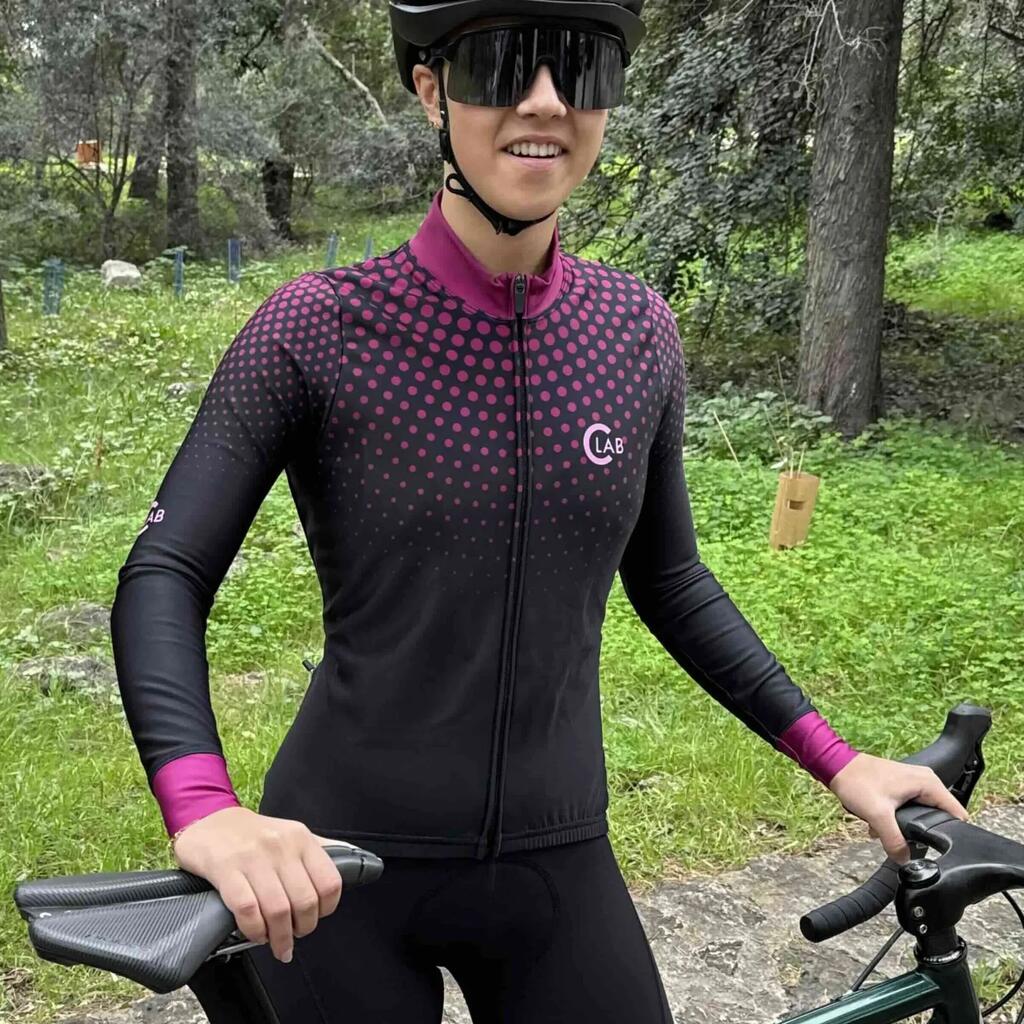 High-end winter cycling jersey for woman, warm and breathable. 4 pockets (1 ziped) on the back. Made in Italy.