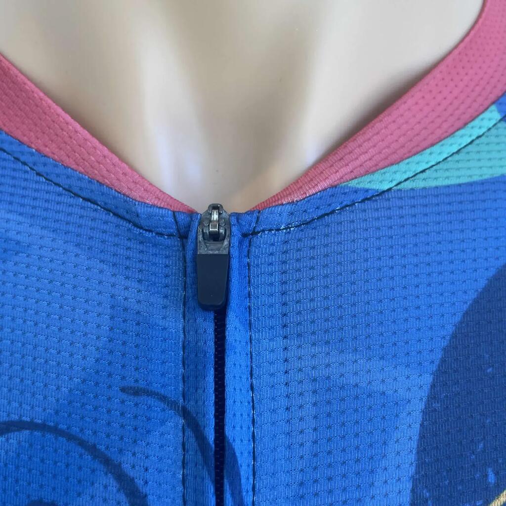 At the front, the full-length zipper allows you to open the jersey completely. It is covered with fabric along its entire length, providing an unmatched aesthetic.