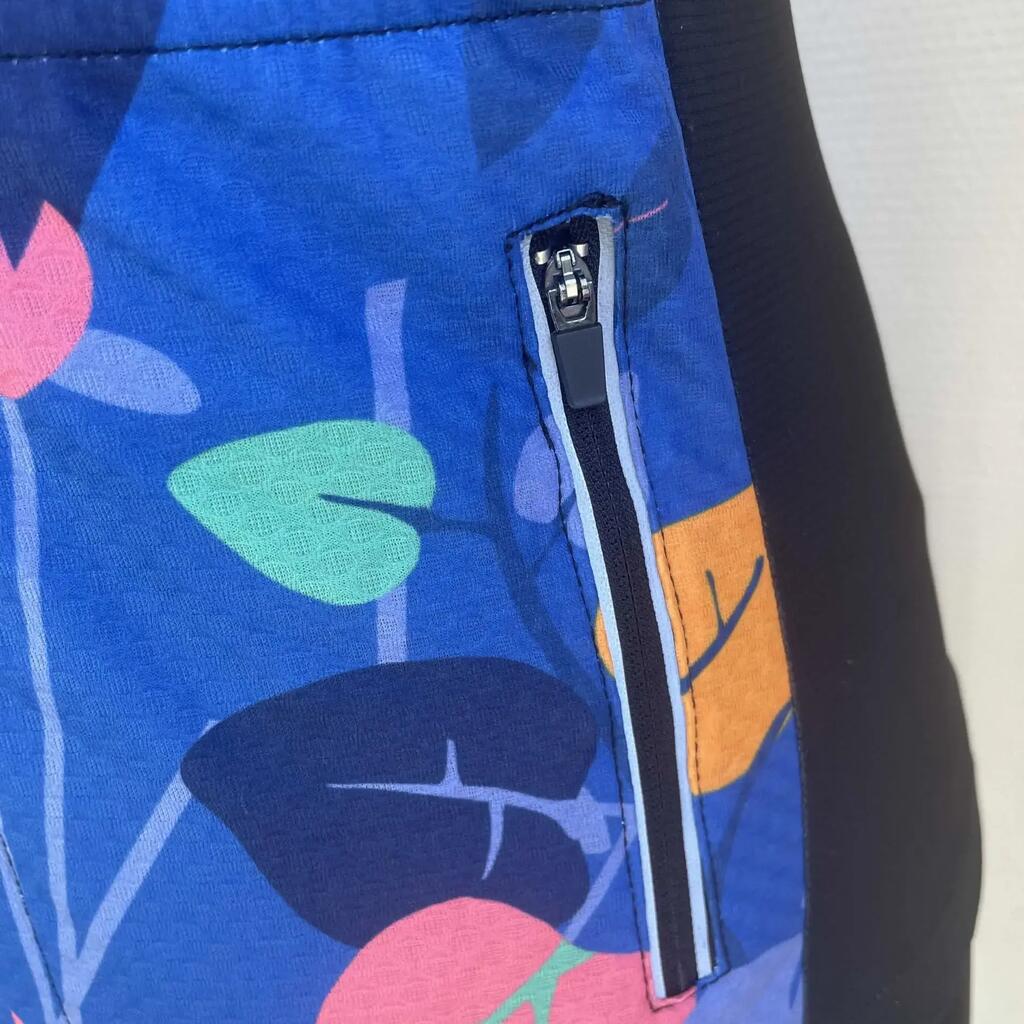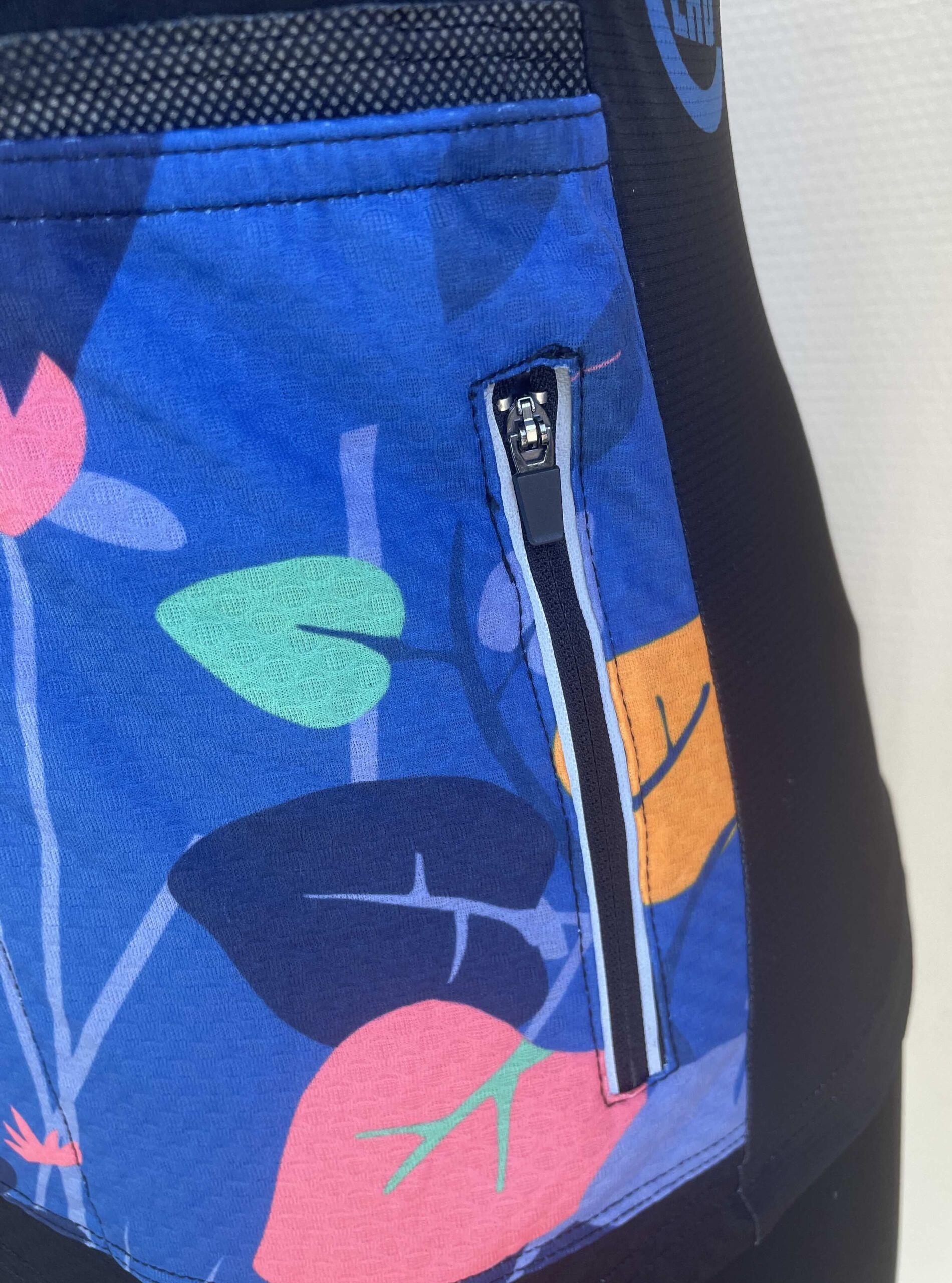 On the back, the very thin mesh fabric allows sweat to evaporate quickly and dries very fast. Three reinforced pockets let you store food, a windbreaker, repair tools, etc. The right rear pocket is equipped with an additional waterproof pocket, accessible via a reflective zipper, allowing you to securely store documents or tickets.