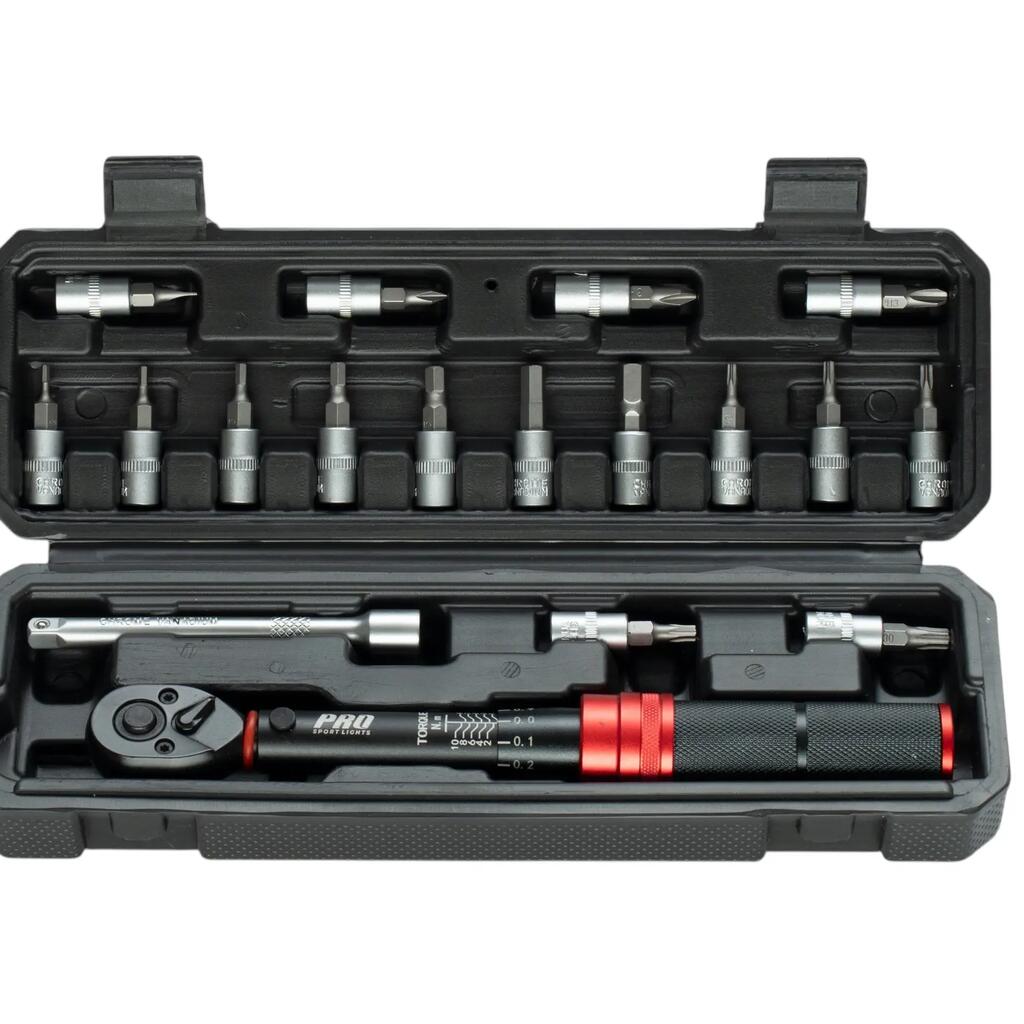 Do you enjoy tinkering with your bicycle? With this compact torque wrench set from Pro Sport Lights, you have everything you need to tighten bolts with the correct force every time.