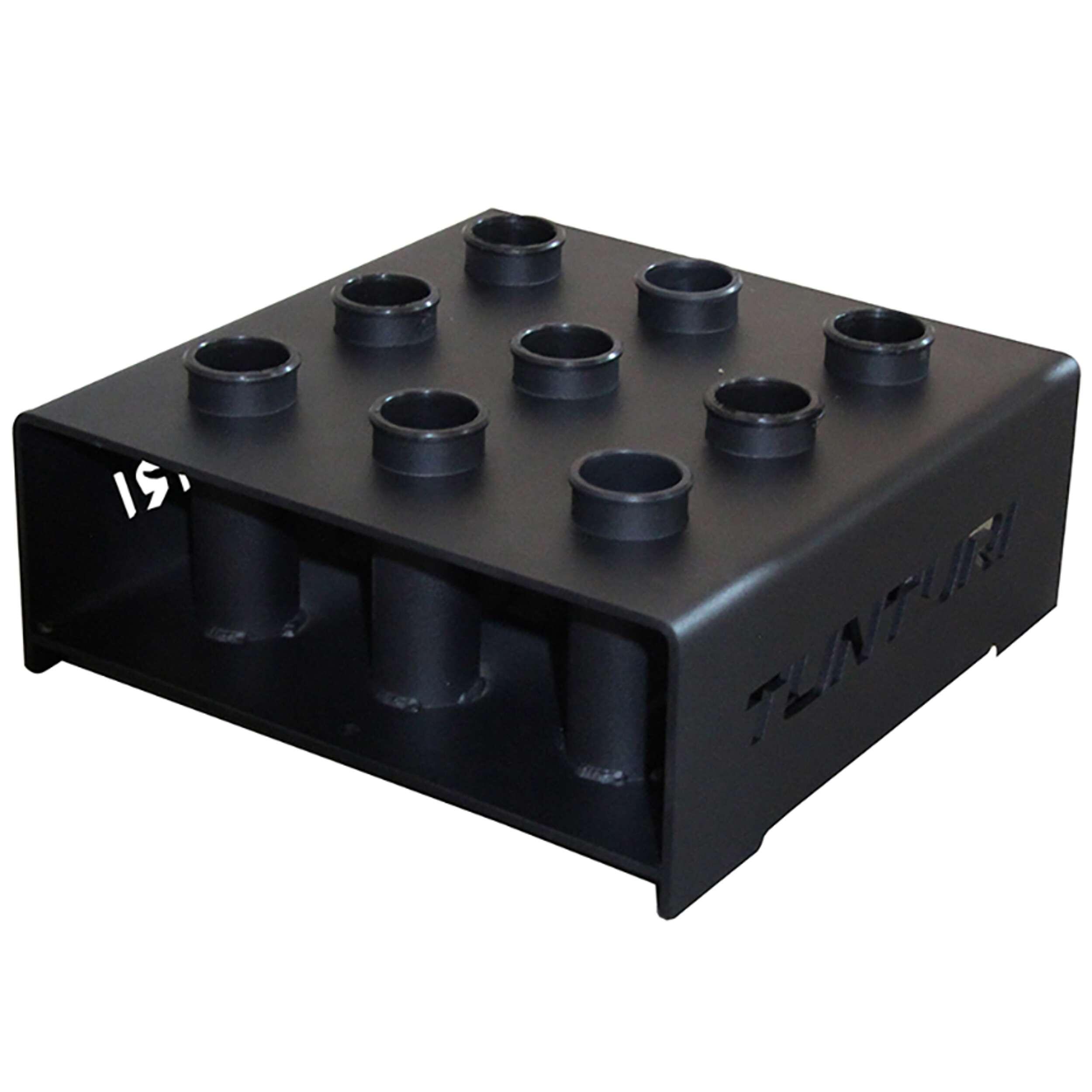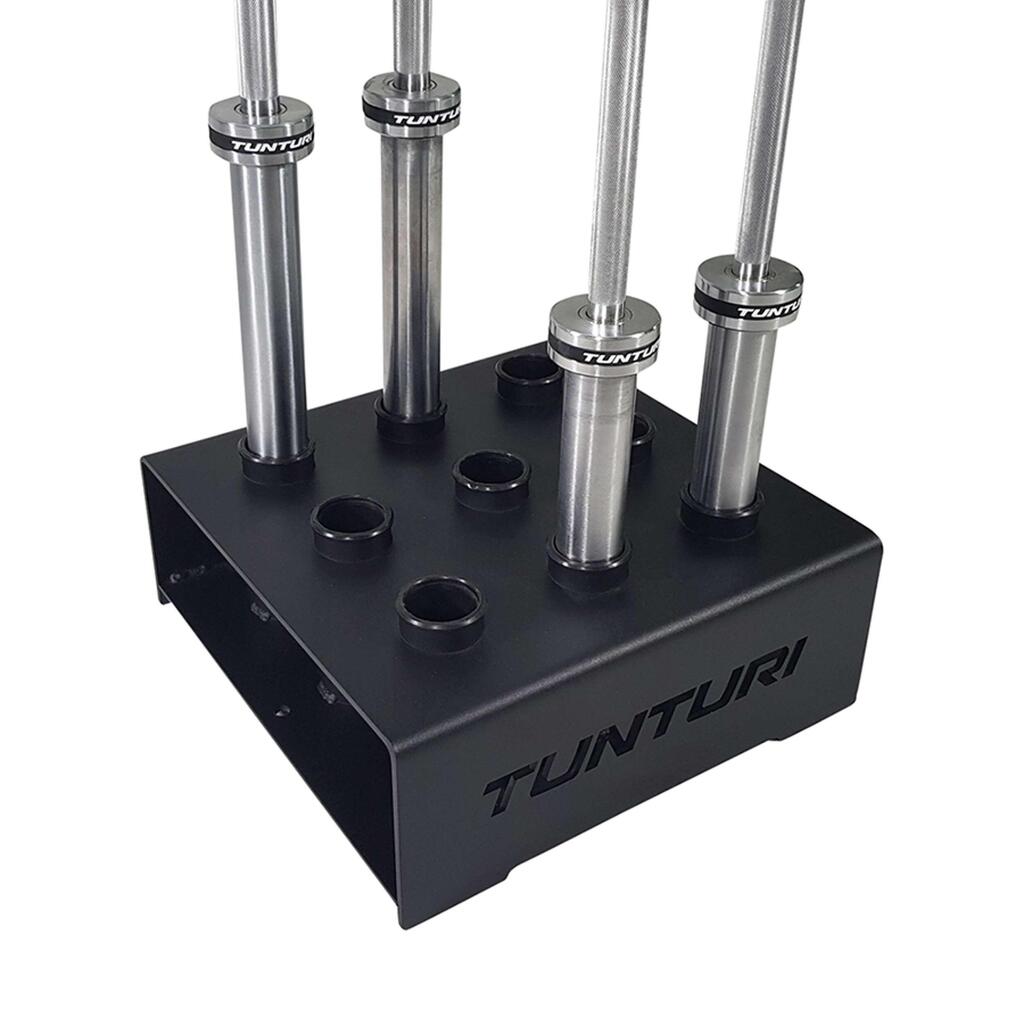 Barbell bars can easily roll across the floor. Store barbell bars easily in the Tunturi Olympic Barbell Holder. The stand is designed for 9 barbells of 50 mm.