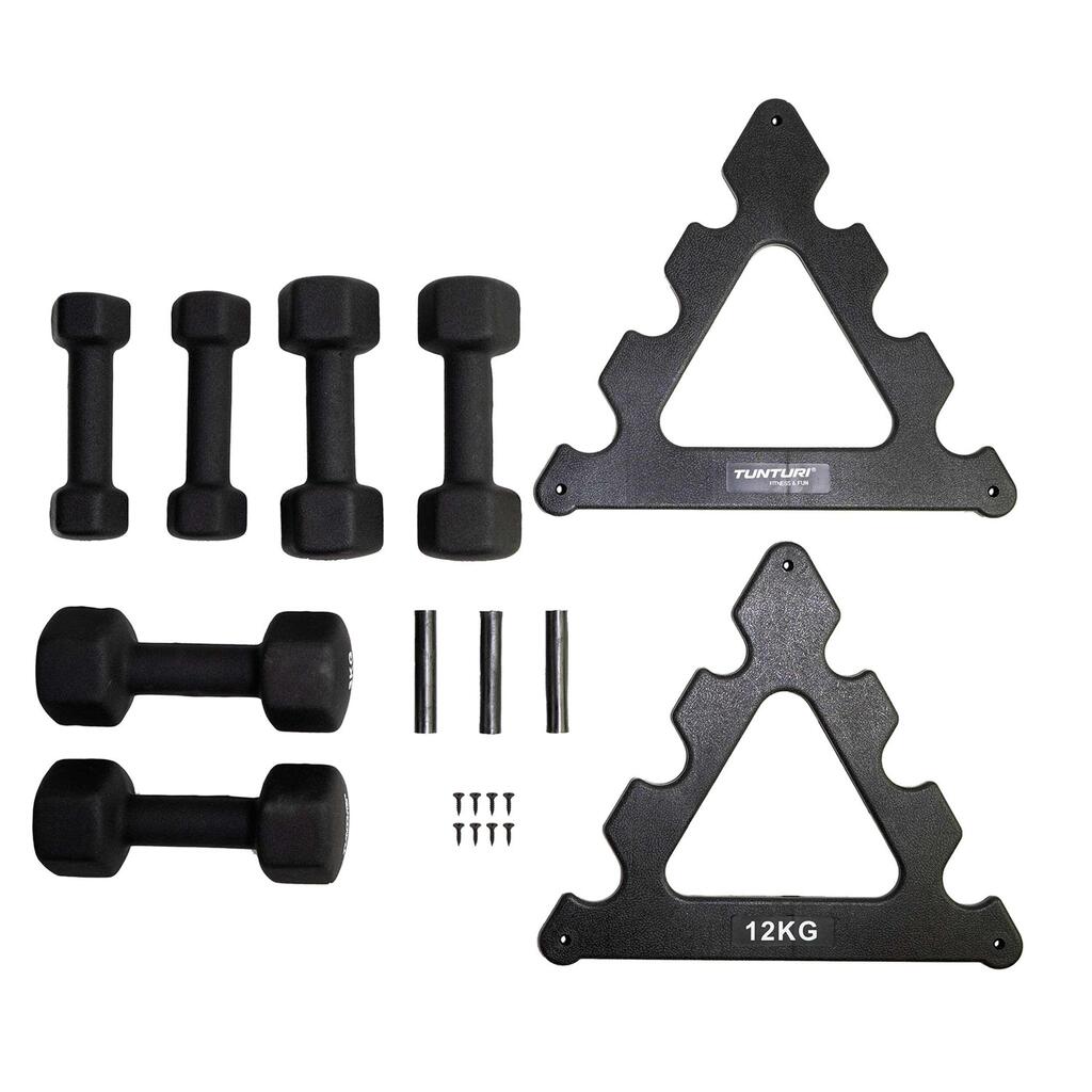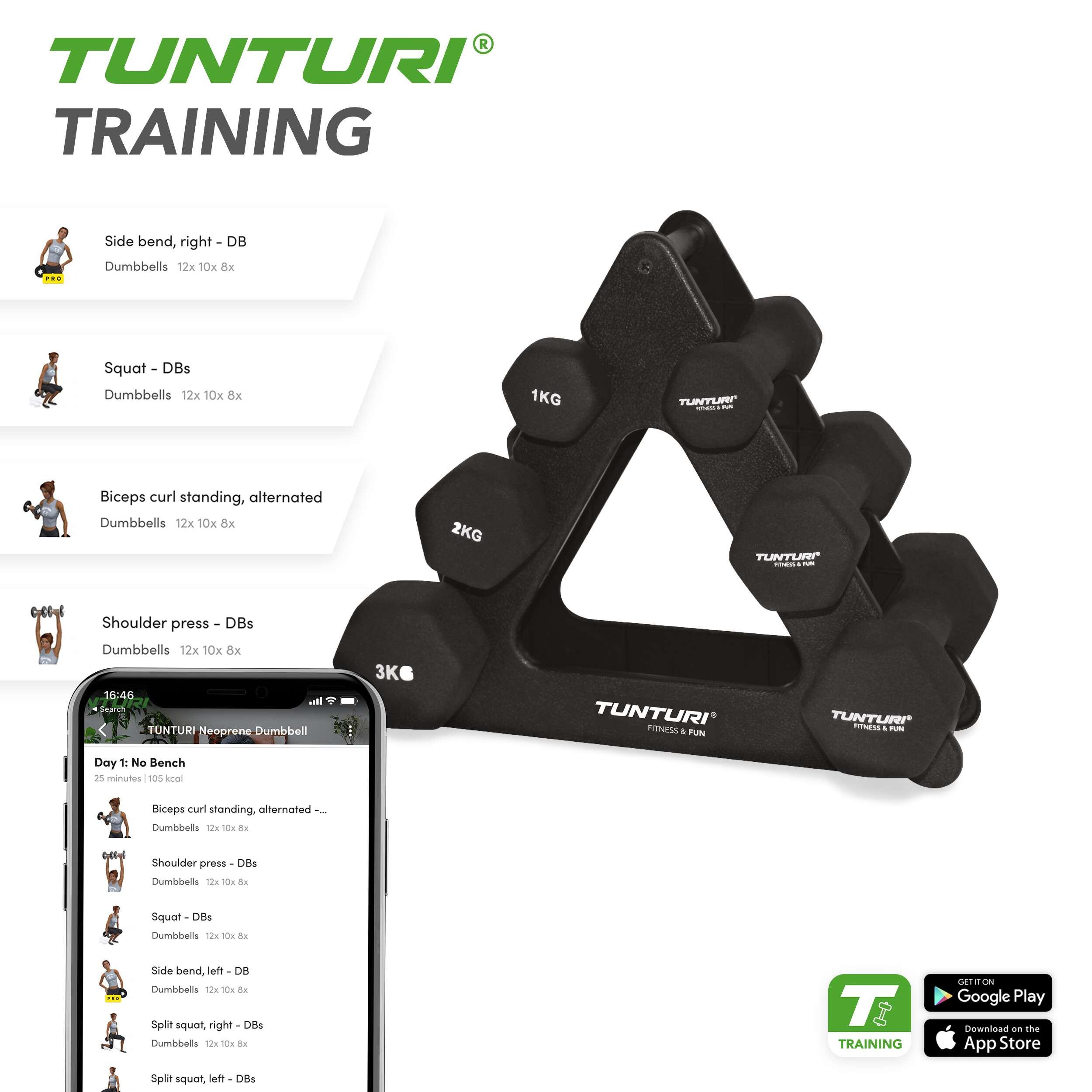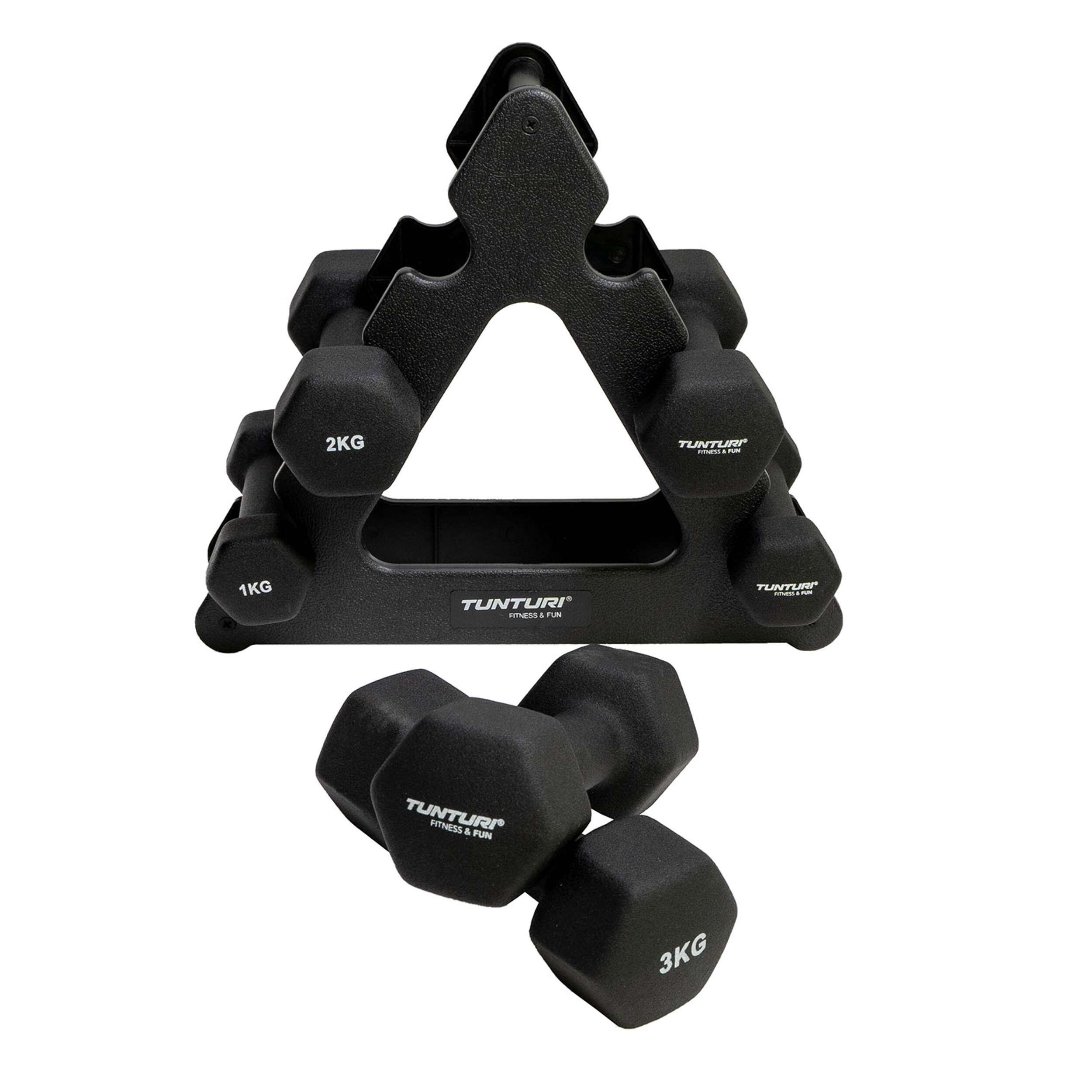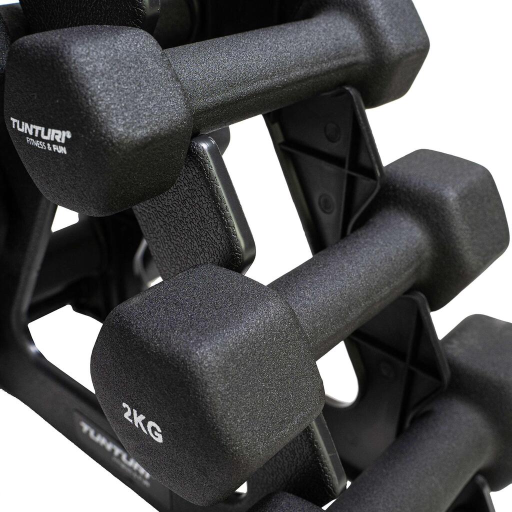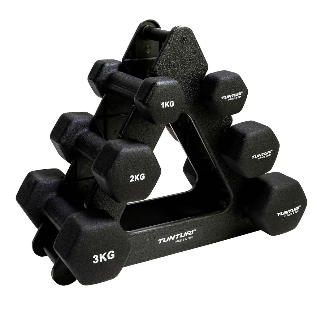 A set of 6 Tunturi dumbbells! Includes storage rack.