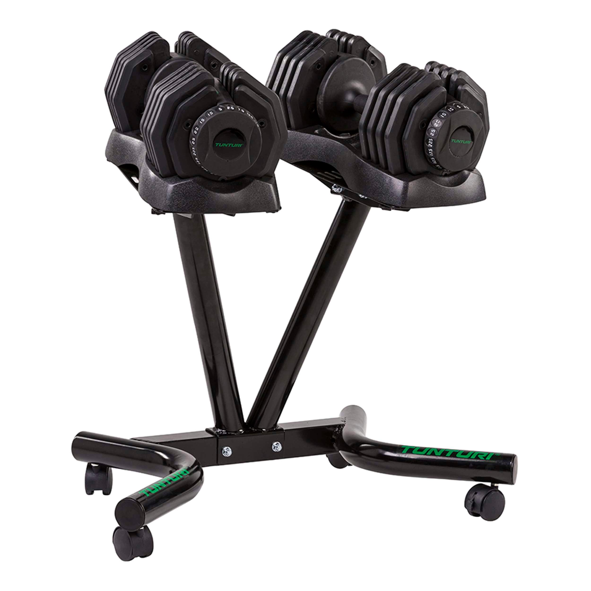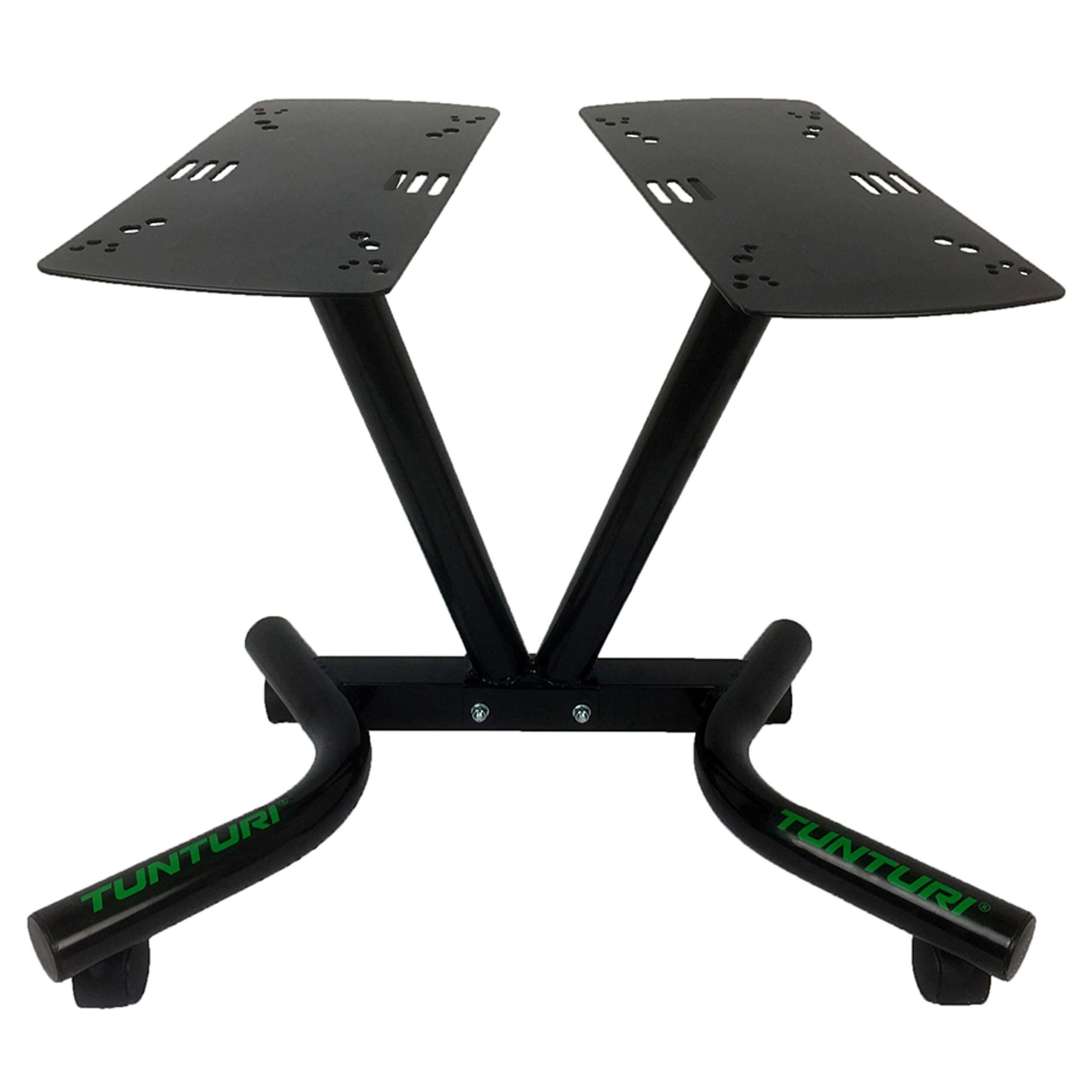 With this very sturdy holder for the Tunturi selector dumbbells, storing, changing weights, and moving the dumbbells is no longer a problem.
