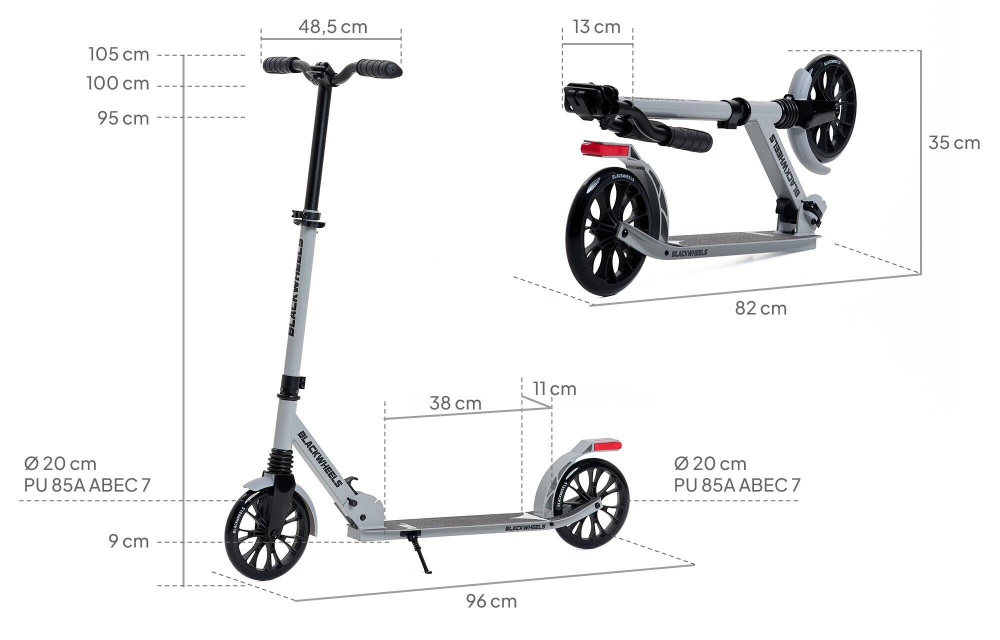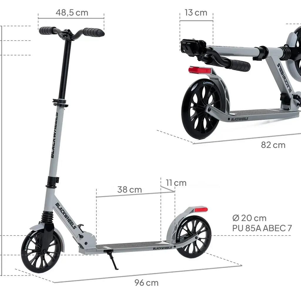 Blackwheels Zoom – foldable city scooter with 200 mm wheels, front suspension and 3-height adjustable handlebar. Smooth, stable and ready for urban rides!
