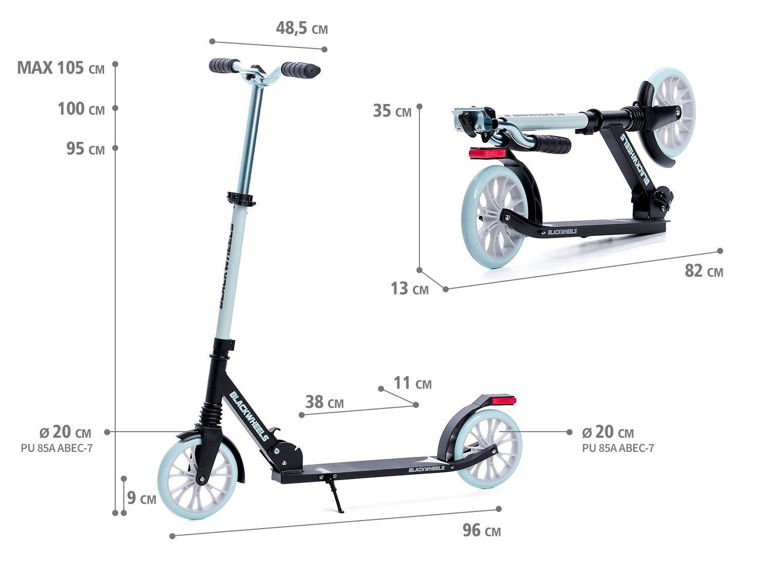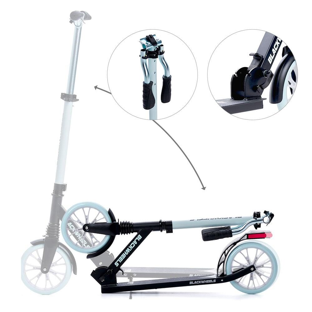 Blackwheels Zoom – foldable city scooter with 200 mm wheels, front suspension and 3-height adjustable handlebar. Smooth, stable and ready for urban rides!