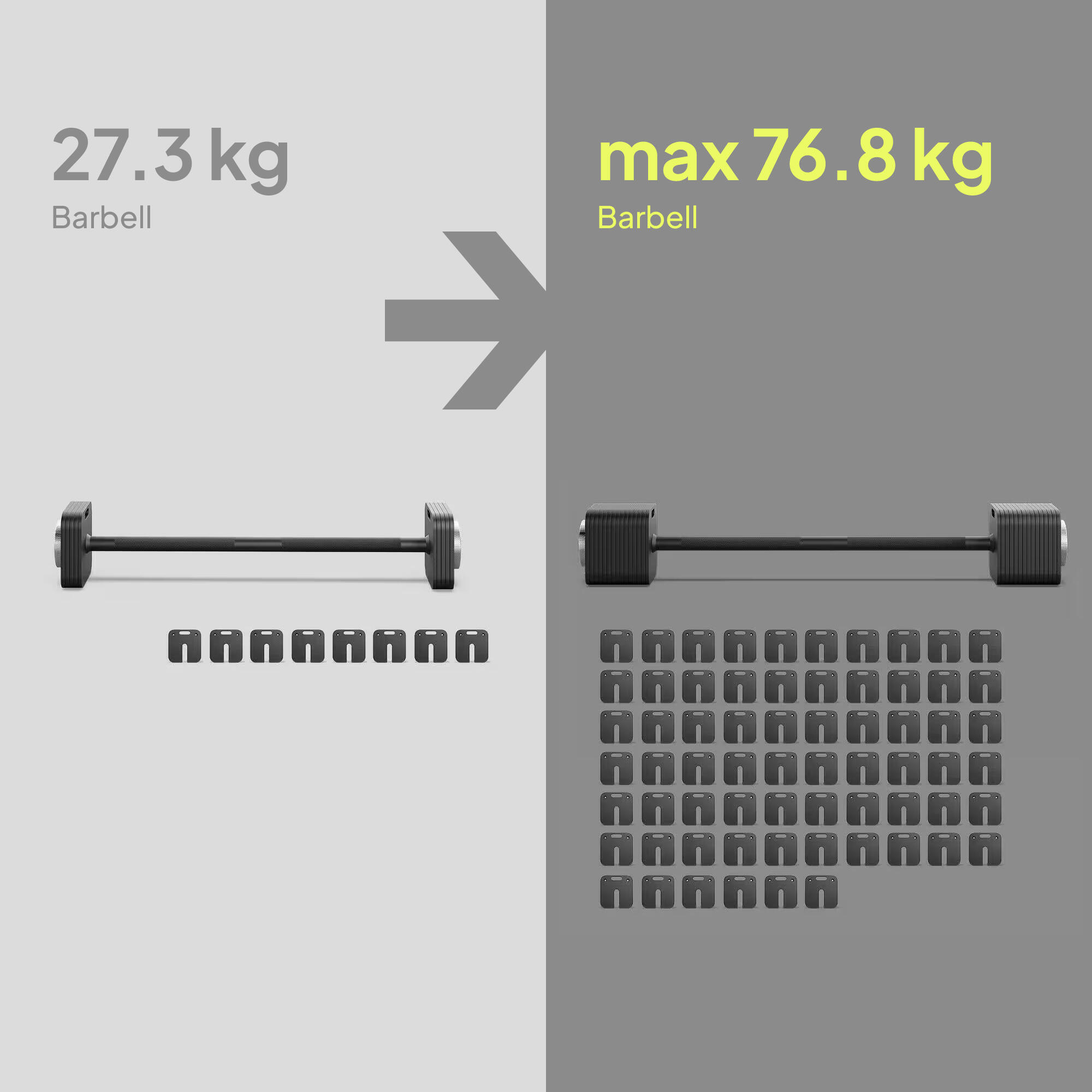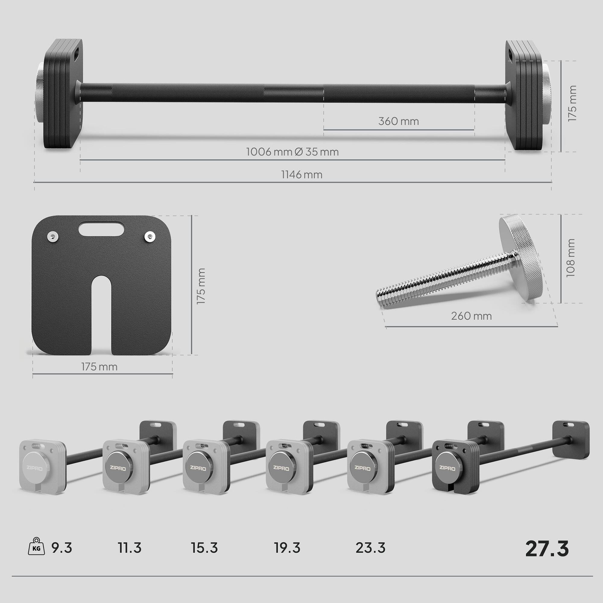 ZIPRO Square Barbell adjustable weight 27.3 kg