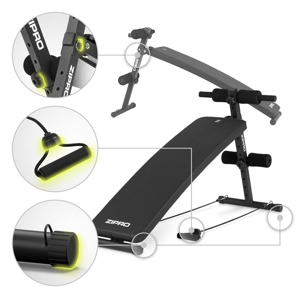 ZIPRO Slant: Adjustable incline bench with 5 levels + resistance bands! Train abs, arms, chest, and back – compact, foldable, and versatile.