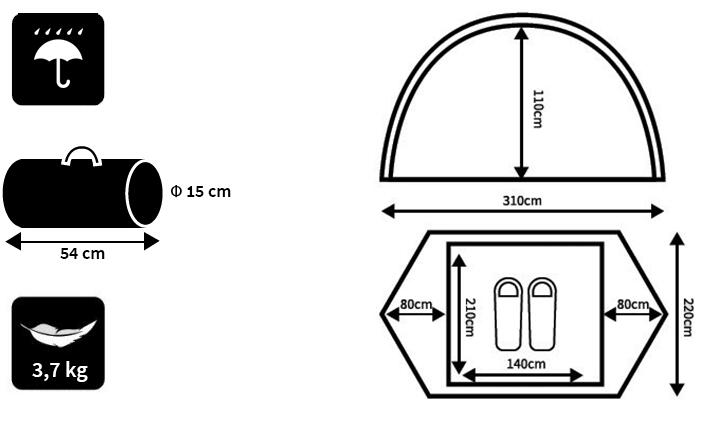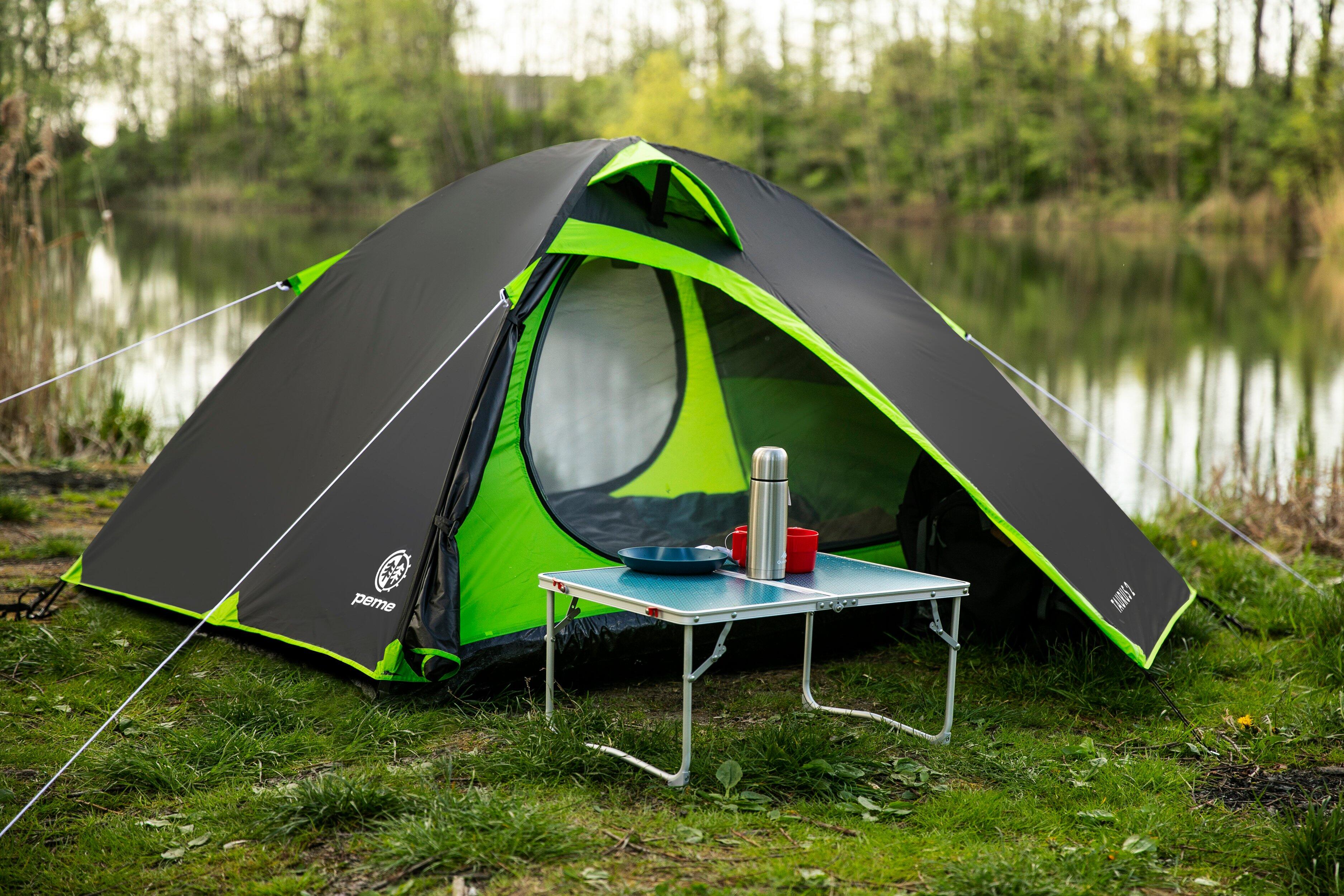 Peme Taurus 2: Lightweight 2-person dome tent with 2 vestibules, mosquito nets, and 4000/6000 mm waterproof rating. Compact, durable, and easy to pitch!