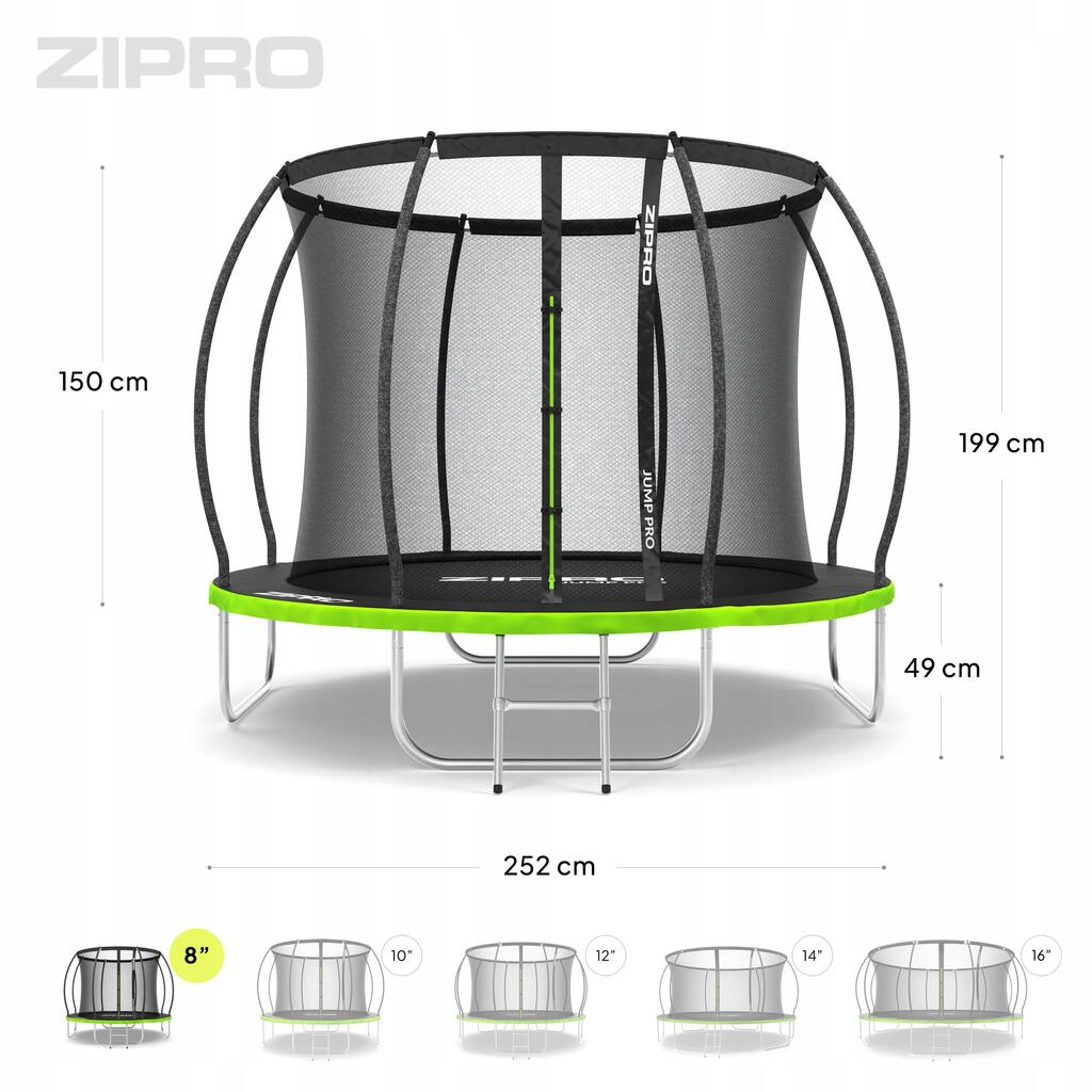 ZIPRO JumpPro PREMIUM 8′ 252 cm Garden Trampoline with Inner Safety Net