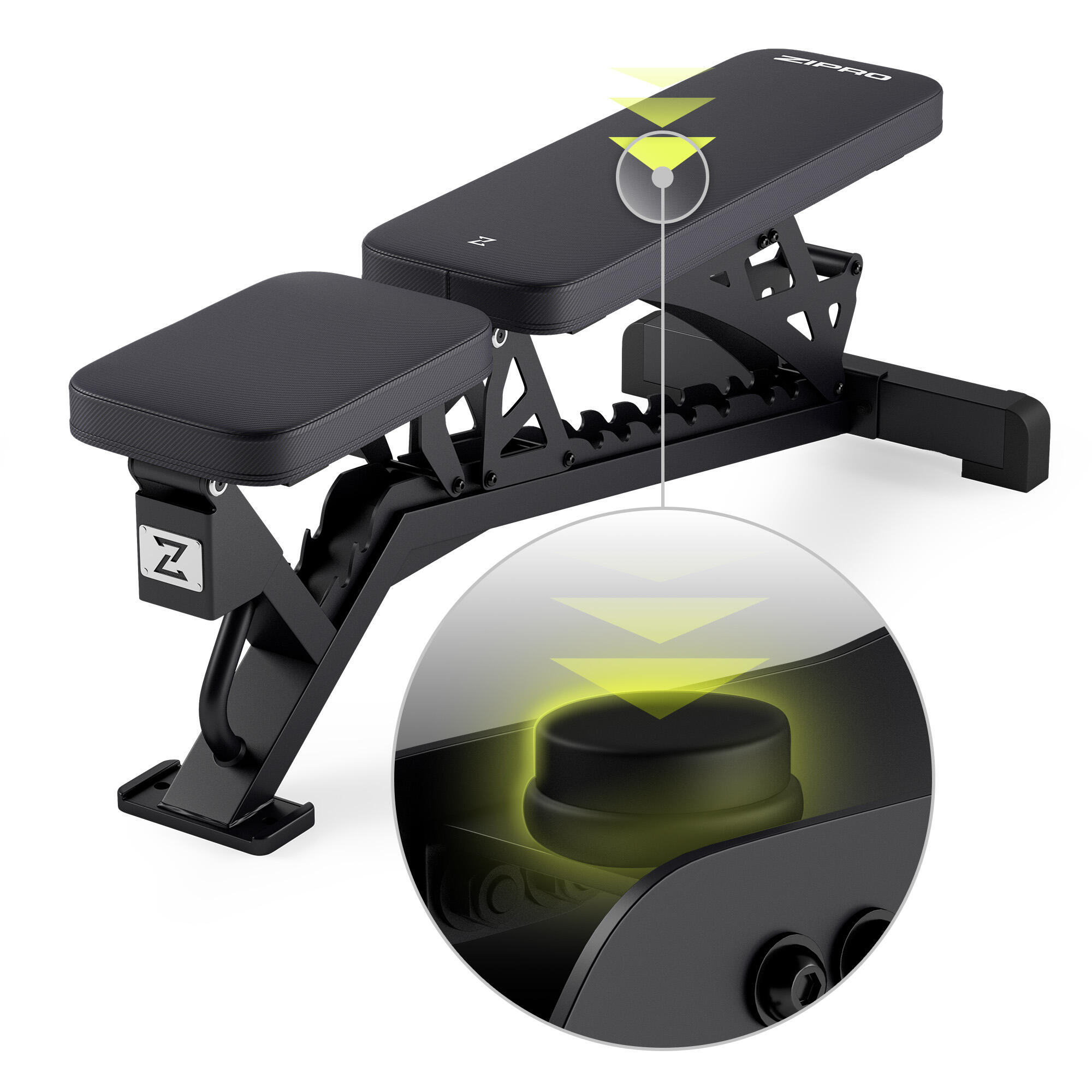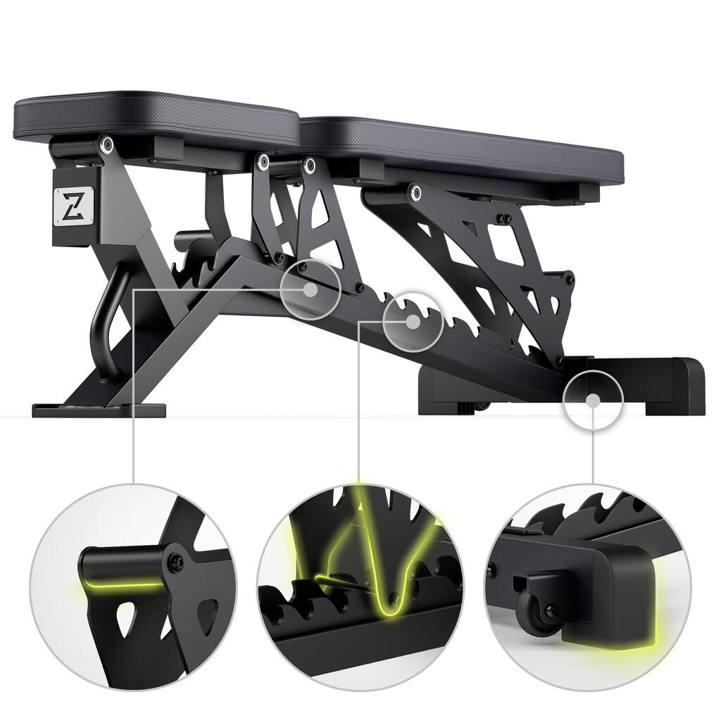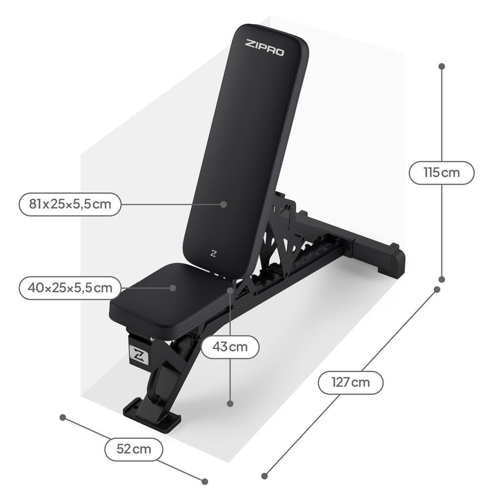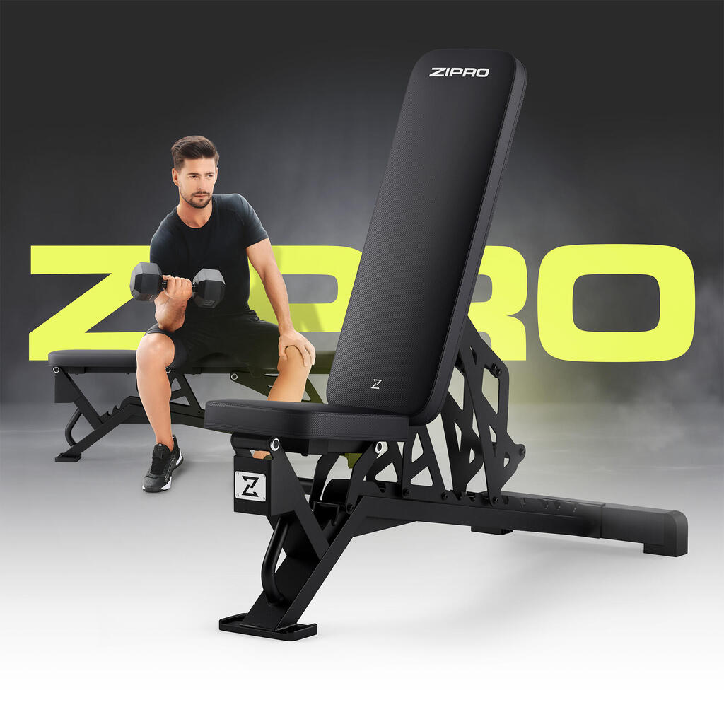 ZIPRO Nocardio: uncompromising weight bench! 8 backrest levels, 3 seat angles, easy adjustment, and robust 350 kg capacity.