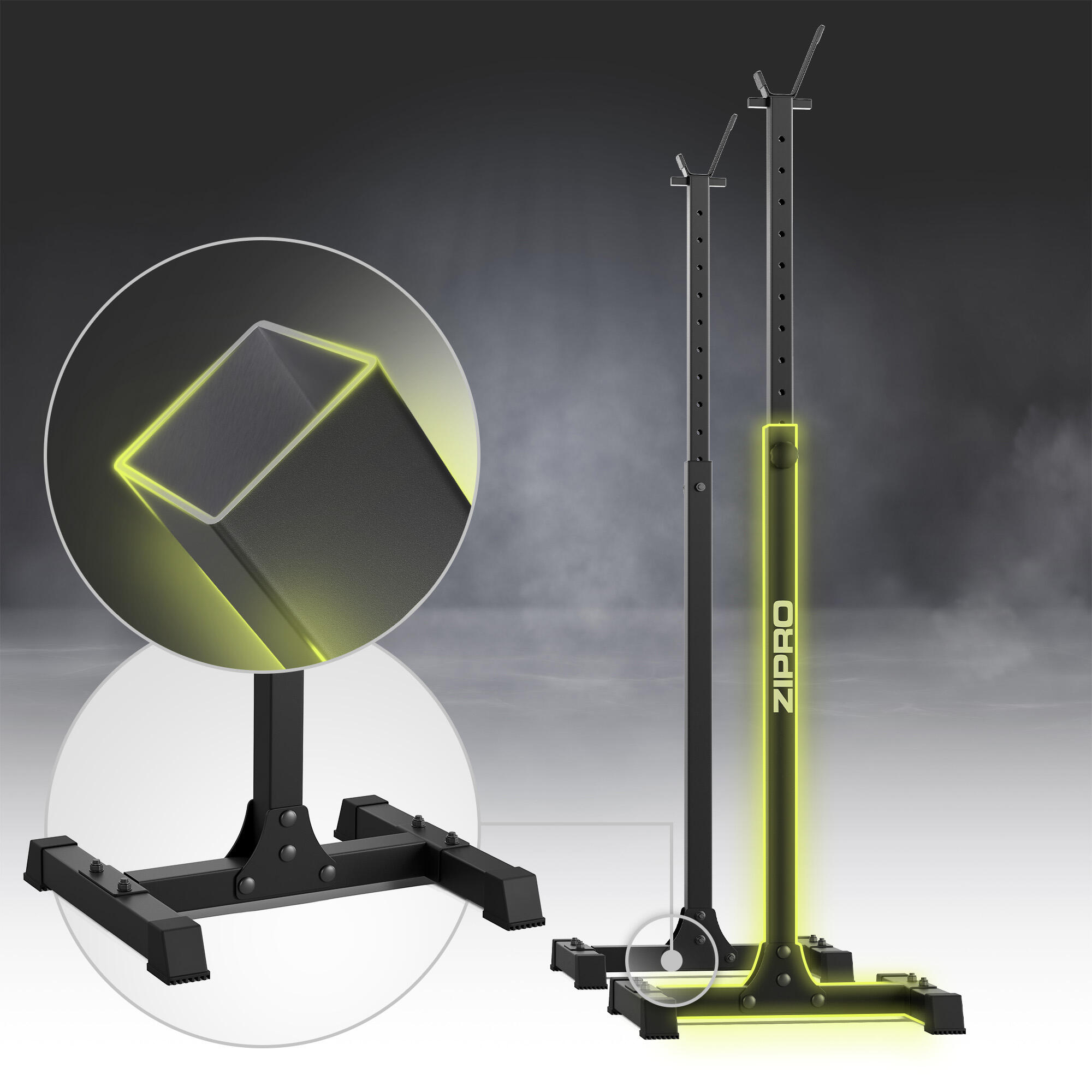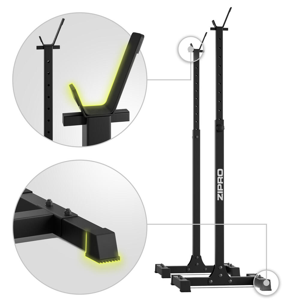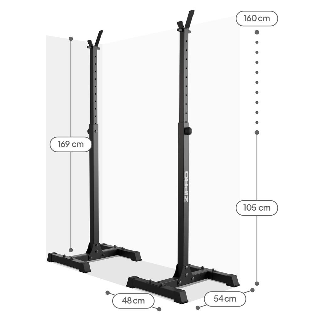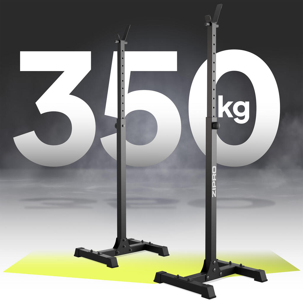 Heavy-duty adjustable barbell stands with 350 kg load capacity – stability, safety, and versatility for every home gym.