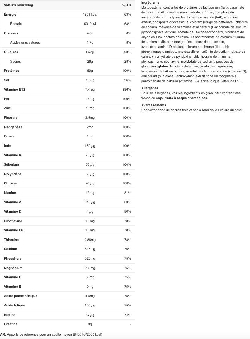 Supplement intended to promote muscle and weight gain and enhance recovery after intense exercise.