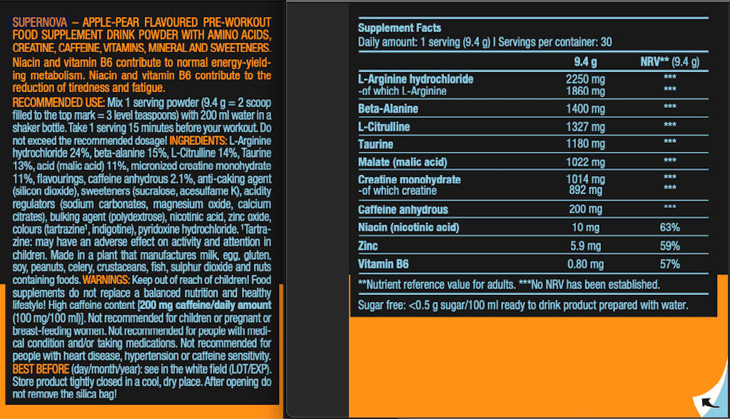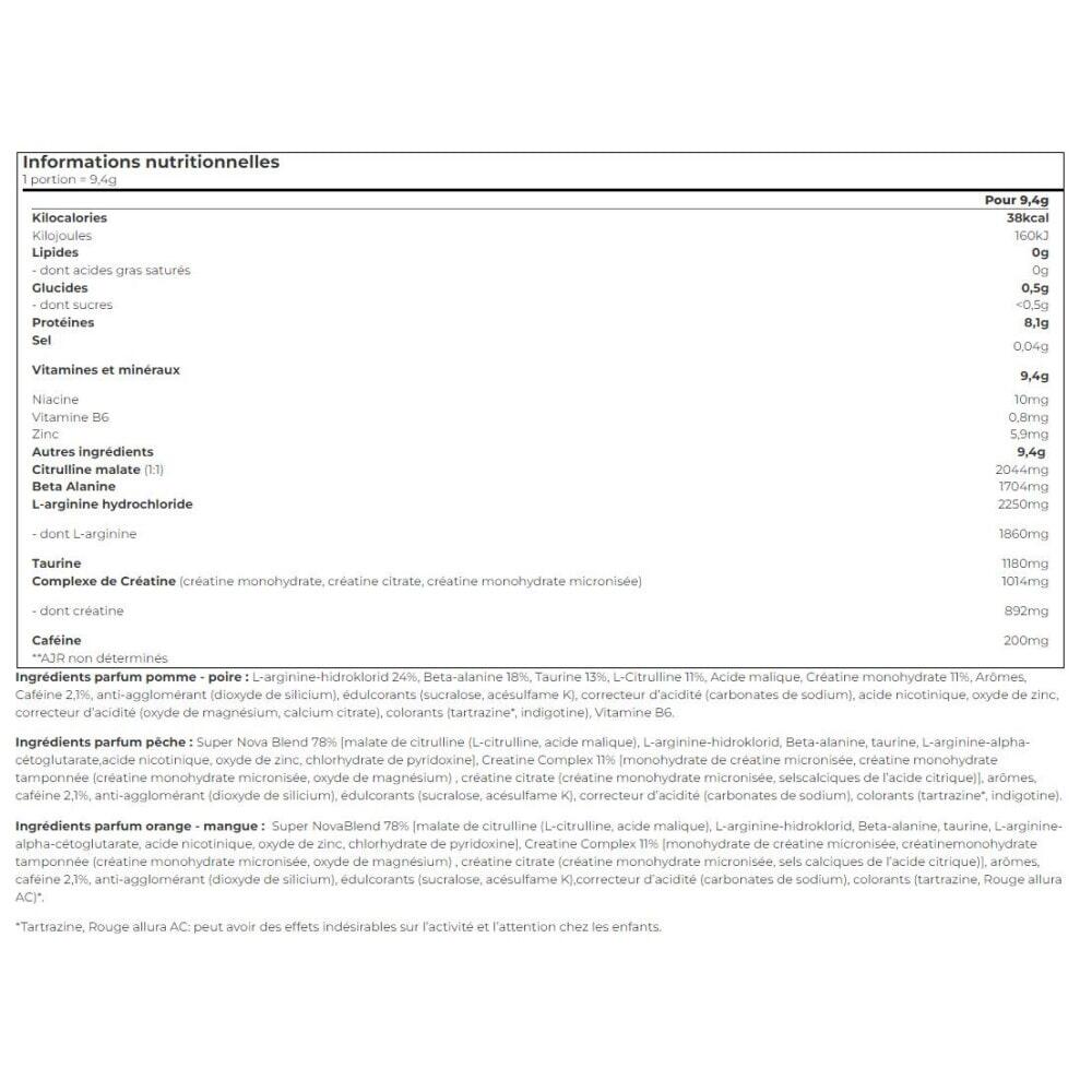 A pre-workout powder formula, to be mixed with water for maximum energizing effect! Super Nova is a blend of 13 active ingredients to ensure your explosiveness.