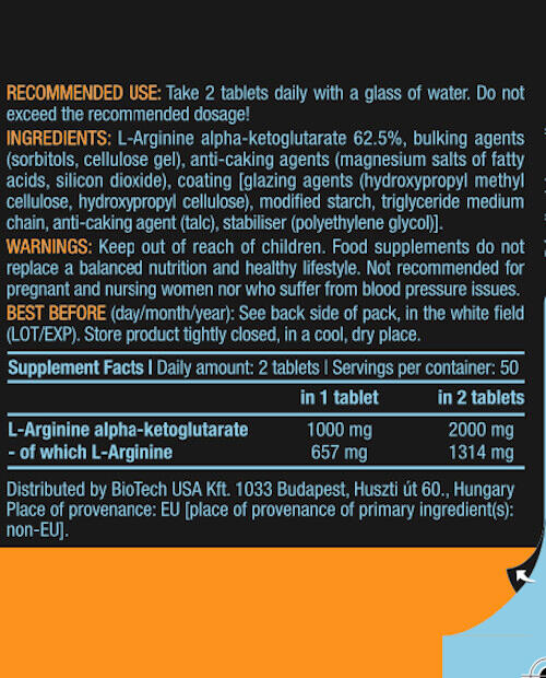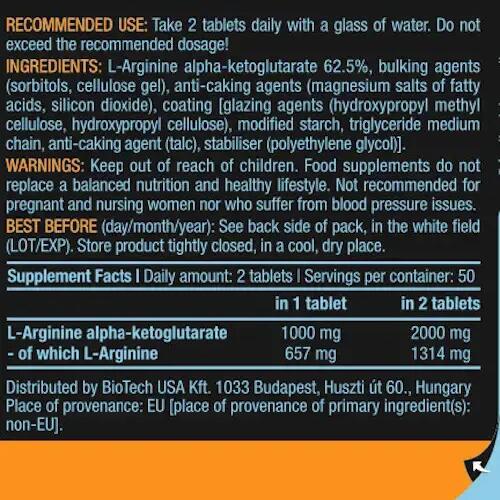 AAKG 1000 is a product developed by BioTech USA with a formula achieved with L-argine alpha-ketoglutarate to enhance nitric oxide.