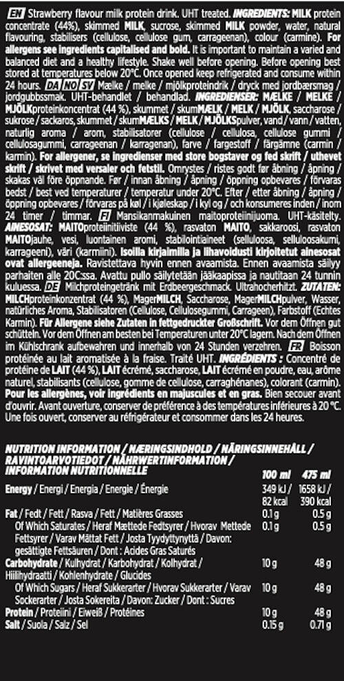 XL shake (12x475ml) is the perfect formulation for building and maintaining muscle mass after training, thanks to 48g of protein.
