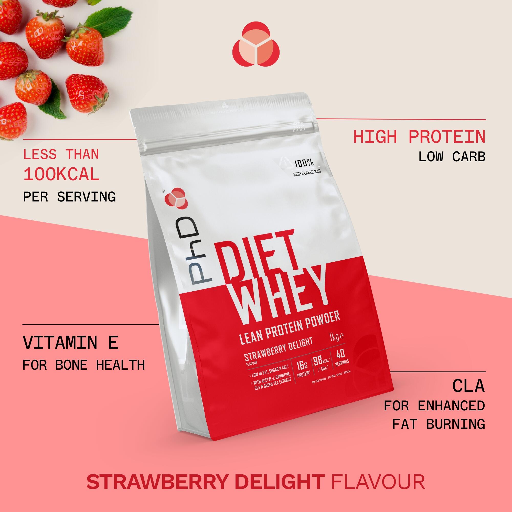 PhD Nutrition Diet Whey High Protein Lean Matrix Protein Powder is a whey protein shake that provides 17g of protein per serving.