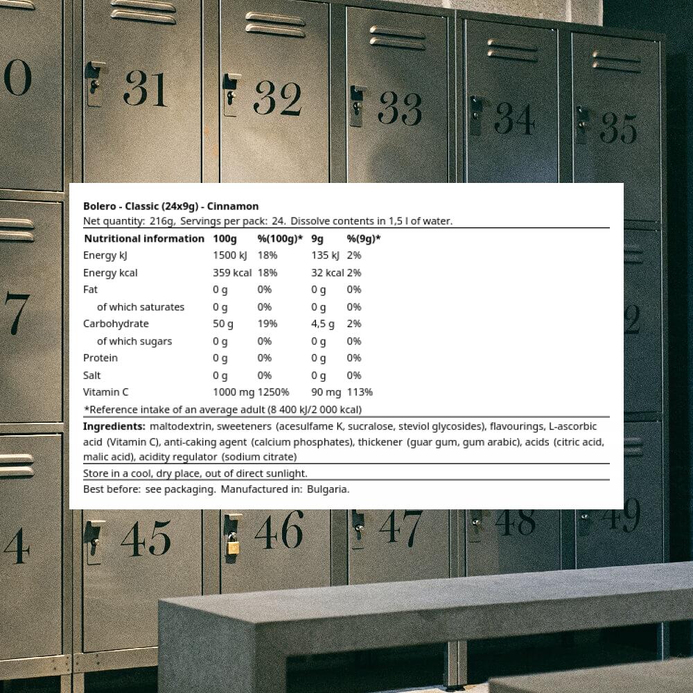 **Product description:** Bolero Classic is a powdered drink mix for preparing a flavored soft drink. It can be dosed flexibly and is easy to mix with water. The powder form allows the intensity of the flavor to be adjusted to individual taste. The nutritional values are 1333 kJ (319 kcal) per 100 g. The carbohydrate content is 44.44 g per 100 g. A serving size of 9 g provides around 120 kJ (approx. 29 kcal) and around 4 g of carbohydrates. The nutritional information refers to the average composition of the product. Bolero Classic is available in numerous flavors, offering variety in your daily beverage preparation. Depending on the variety, the composition of the ingredients and flavor nuances may vary slightly.**Sports nutrition and supplements:** play an important role in supporting a balanced diet, especially for active people and athletes. They can help to increase performance, promote recovery and provide the necessary energy. Protein products, such as shakes and bars, are particularly popular as they help to build and maintain muscle. In addition to proteins, carbohydrates, vitamins and minerals are also crucial for maintaining physical health and performance. Supplements can be a useful addition to cover specific nutritional needs and ensure that the body is optimally supplied.**Product advantages:** The product Classic offers a variety of benefits that make it an ideal choice for health-conscious consumers and athletes: The product is Powdered drink with an energy content of 1333 kJ (319 kcal) per 100 g. A serving of 9 g provides around 120 kJ (approx. 29 kcal)., Per 100 g, the powder contains 44.44 g of carbohydrates; based on a serving size of 9 g, this corresponds to approximately 4 g of carbohydrates., Versatile for preparing individual beverages. The composition of the ingredients may vary slightly depending on the flavor.. **Consumption recommendation:** Stir 9 g of powder into water and mix well. The amount of water can be adjusted depending on the desired flavor intensity. Bolero Classic can be used as part of a varied and balanced diet. Ingredients may vary slightly depending on the flavor.Instructions for use: 1 serving per day.. Dissolve contents in 1,5 l of water.