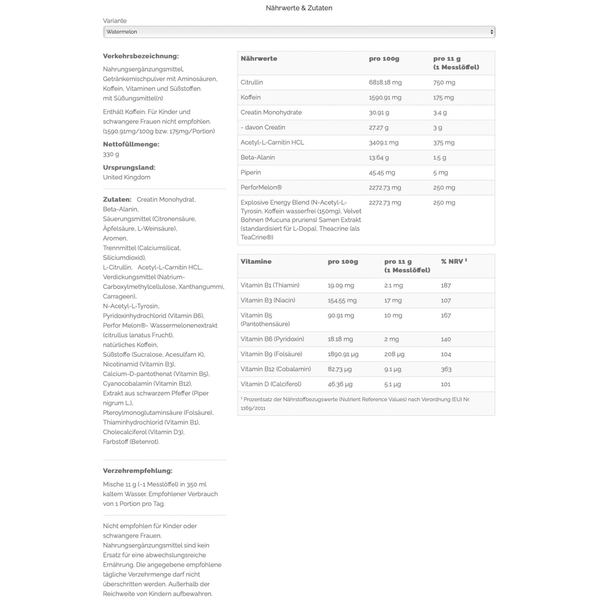 Gold Standard Pre-Workout - 330gr Watermelon Optimum Nutrition