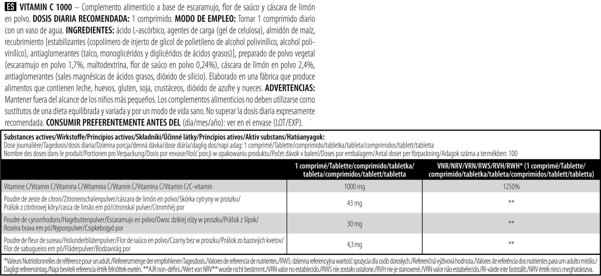 Vitamin C 1000 mg with rosehip extract and calcium, 100 tablets.