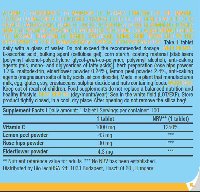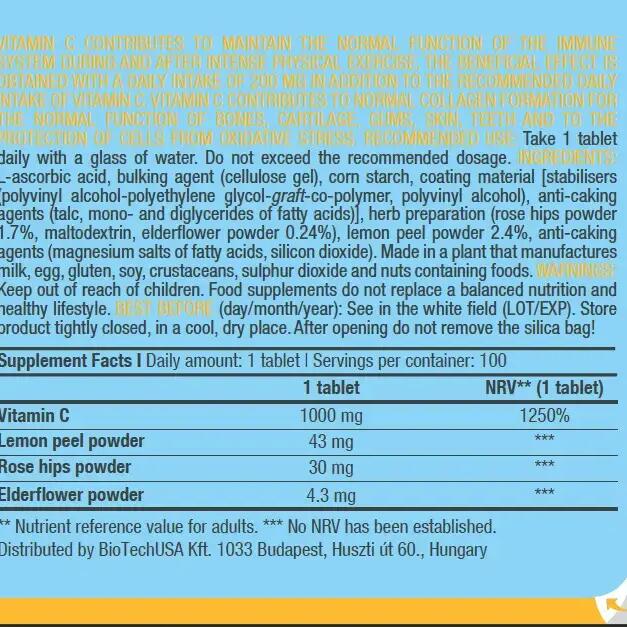 Vitamin C1000 + Rose Hips - 100 Tablets Biotech USA