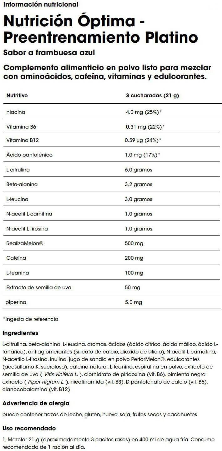 Platinum Pre Workout by Optimum Nutrition is a pre-workout supplement that maximizes your energy and focus with 6g of L-citrulline, 3.2g of beta-alanine, and 200mg of caffeine.
