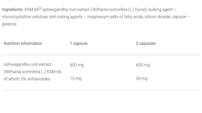 Patented KSM‑66 ashwagandha (≈5% withanolides), popular adaptogen for active people, supports stress resilience, recovery and muscle-building efforts — 60 capsules.