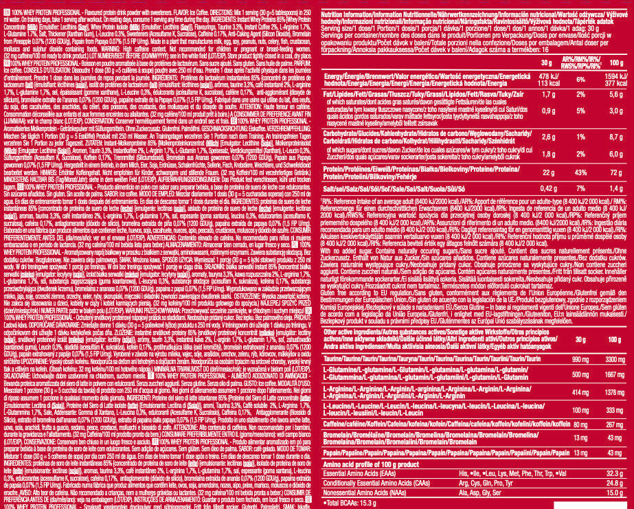 100% Whey Protein Professional from Scitec Nutrition is a food supplement composed of a formula based on whey protein concentrate, amino acids and digestive enzymes.