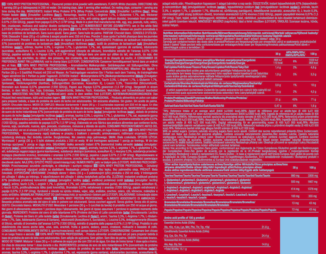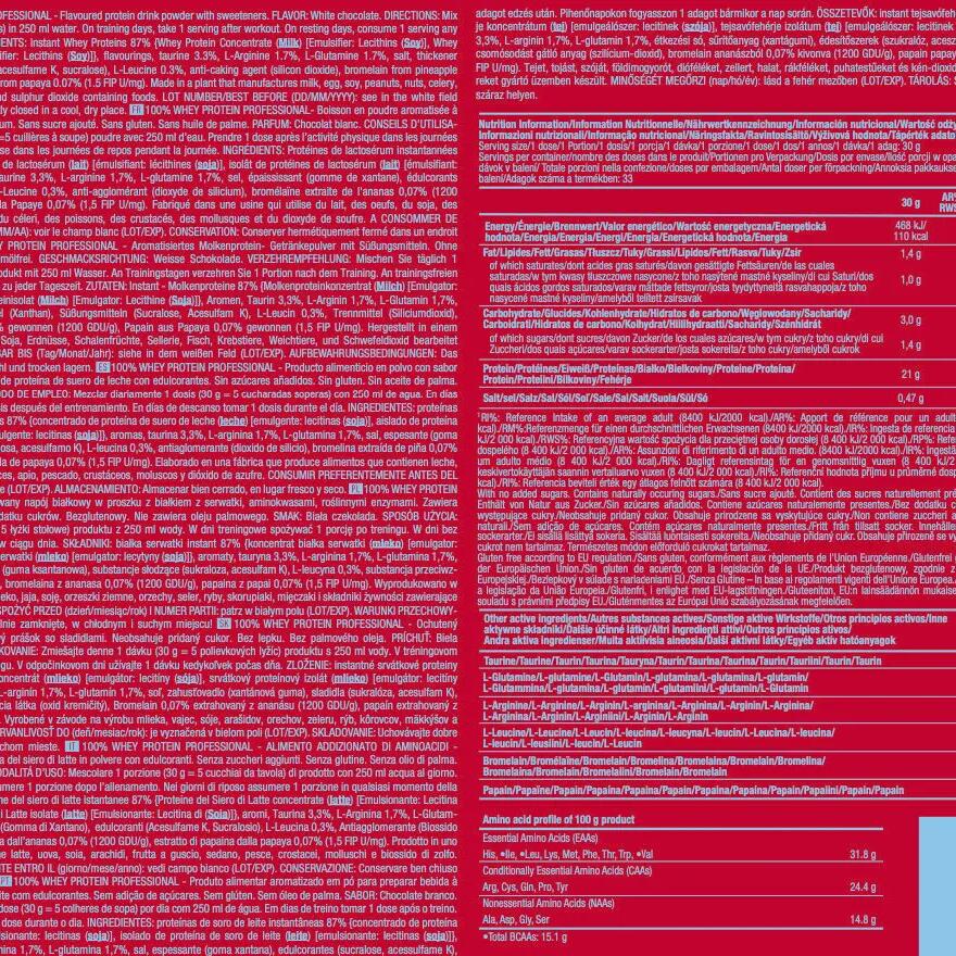 100% Whey Protein Professional from Scitec Nutrition is a food supplement composed of a formula based on whey protein concentrate, amino acids and digestive enzymes.