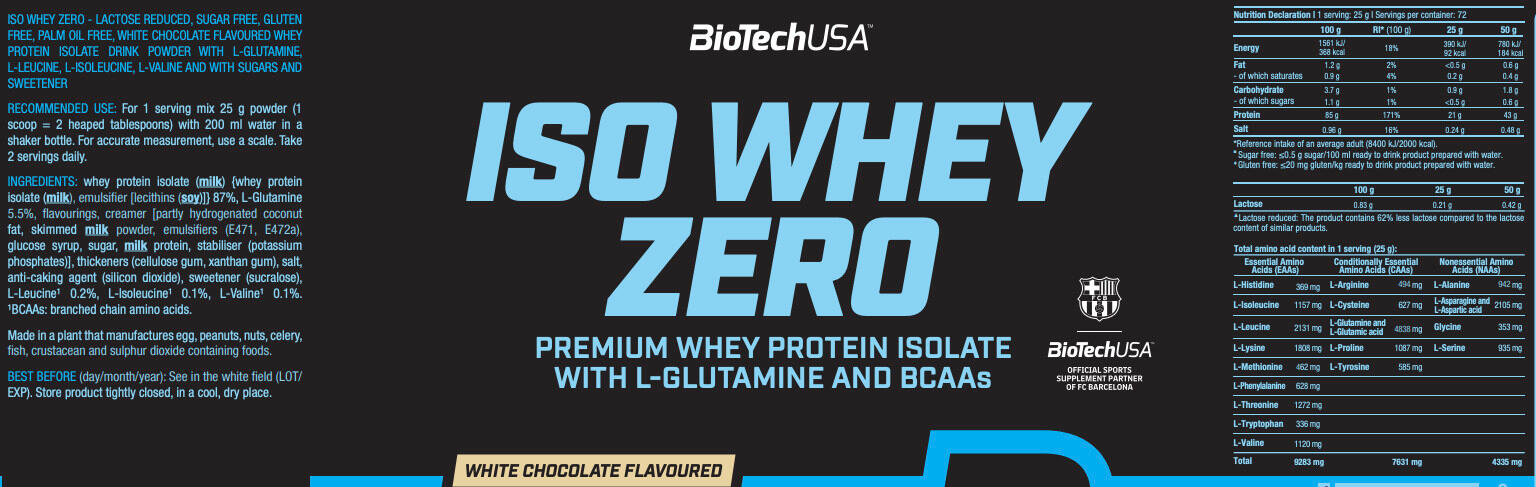ISO Whey Zero from BioTech USA is a sports supplement that provides your body with high-quality whey protein isolate, enriched with branched-chain amino acids.