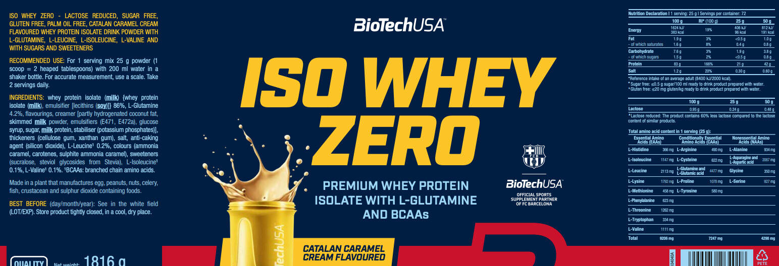ISO Whey Zero from BioTech USA is a sports supplement that provides your body with high-quality whey protein isolate, enriched with branched-chain amino acids.