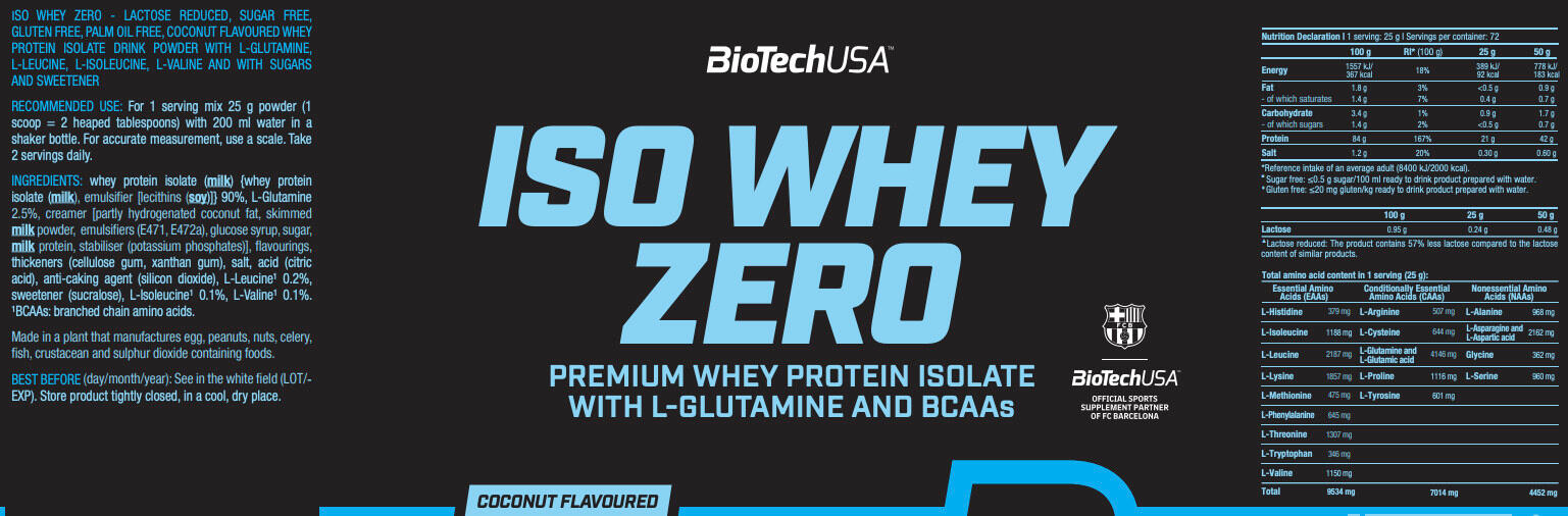 ISO Whey Zero from BioTech USA is a sports supplement that provides your body with high-quality whey protein isolate, enriched with branched-chain amino acids.