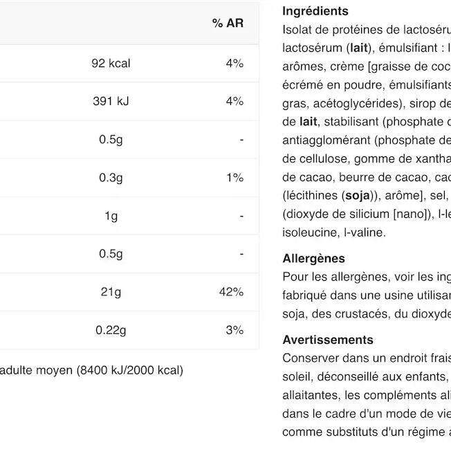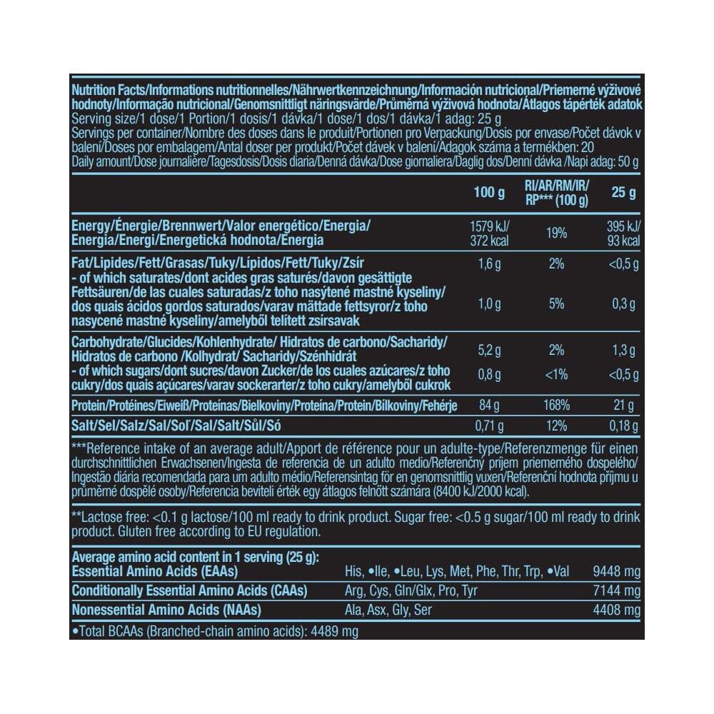 ISO WHEY ZERO MAXIMAL REINES MOLKENPROTEIN-PULVER OHNE LACTOSE, TRANSFETTE UND ZUCKER. REINHEIT ÜBER ALLES Iso Whey ZERO besteht aus dem reinsten durch Querstrom-Mikrofiltration hergestellten Molkenprotein-Isolat (WPI) und enthält wahrhaftig KEINE Lactose, KEINE Transfette und KEINEN Zucker. Iso Whey ZERO besteht, wie alle Produkte von BioTech USA, aus 100 % unbedenklichen, sorgfältig ausgewählten Nährstoffen. Einige mögen es mager Der extrem hohe biologische Wert von Proteinen macht Iso Whey ZERO absolut einzigartig in der Produktlinie von BioTech USA. Es ist perfekt für Sportler, deren Ziel der Zugewinn an ultramagerer Muskelmasse ist, da Proteine das Wachstum der Muskelmasse und den Erhalt der Muskeln unterstützen. Wenn wir NULL sagen, meinen wir NULL Es ist wahr: Iso Whey ZERO enthält NULL Transfette und NULL Zucker. Keine nutzlosen oder versteckten Nährstoffe, die vom Körper als Fett gespeichert werden könnten. Nur 22 g reinstes, muskelbildendes Protein in jeder Portion. Hohes BCAA, L-Glutamin, EAAs Das Amino-Profil von Iso Whey ZERO, hergestellt aus sorgfältig ausgewählten Proteinquellen, eignet sich perfekt für einen echten Muskelzuwachs. Es besitzt einen hohen Gehalt an BCAAs und EAAs (essentielle Aminosäuren) sowie L-Glutamin, den wichtigsten Aminosäuren, die darauf abzielen, eine schlanke Muskelmasse aufzubauen. GEBRAUCHSANWEISUNGEN Mische eine Portion (25 g) Iso Whey Zero mit 200 ml Wasser oder Magermilch. Zur gesteigerten Proteinaufnahme bei den Mahlzeiten verzehren. ZUTATENProtein premix (Whey protein isolate, hydrolysed wheyprotein isolate, cross-flow ultra filtration whey proteinconcentrate, BCAAs), low fat cocoa powder, thickeners(E466, E415), sweetener (E955), flavours, stabilizer:E340, milk protein, anti caking agent: E551, emulsifier:E471, color: E160a.