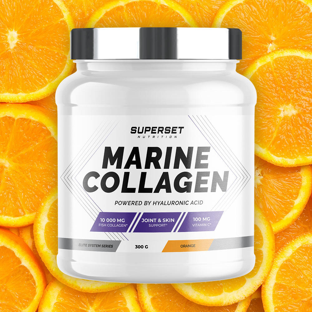 Give your body the support it deserves with MARINE COLLAGEN (300G)!MARINE COLLAGEN (300G) from Superset Nutrition is the essential dietary supplement for athletes and non-athletes alike! It's made from marine collagen, a protein ly present in the body that's so important for the health of your joints, bones, cartilage and tendons.MARINE COLLAGEN (300G) contributes to :Optimum joint comfortPrevent pain and injuryDid you know?Collagen degrades with age (from the age of 25!) - it's physiological... And this can lead to tissue degradation (joints, bones, muscles and skin). So, collagen supplementation is designed to support joint health as a preventive measure, especially when your joints are put to the test by regular physical activity!'>,The ultimate ally for strong, healthy joints!Its powerful formula, enriched with hyaluronic acid and vitamin C, offers multiple benefits!Vitamin C (100 mg per dose): has antioxidant properties that protect cells against oxidative stress and a key role in collagen synthesis, essential for healthy skin, joints and muscles.Hyaluronic acid (100 mg per dose): protects cartilage during intense physical effort and maintains joint suppleness and mobility, reducing the risk of injury and premature wear.As a bonus, you can be strong and beautiful, since collagen helps improve skin firmness and, coupled with hyaluronic acid, helps rehydrate the skin deep down, reduce wrinkles and improve skin elasticity and tone. Top quality!Thanks to its ultra-clean, complete formulation, MARINE COLLAGEN (300G) provides essential support all year round, helping to maintain healthy joints, promote recovery after exercise andoptimize your sports and healthresults!The advantages of MARINE COLLAGEN (300G)? Optimum assimilation (low molecular weight: 2000 daltons)Ofmarine originPerfectly miscible powder with no unpleasant aftertasteCertified anti-doping, gluten-free, soy-free, GMO-free and Halal