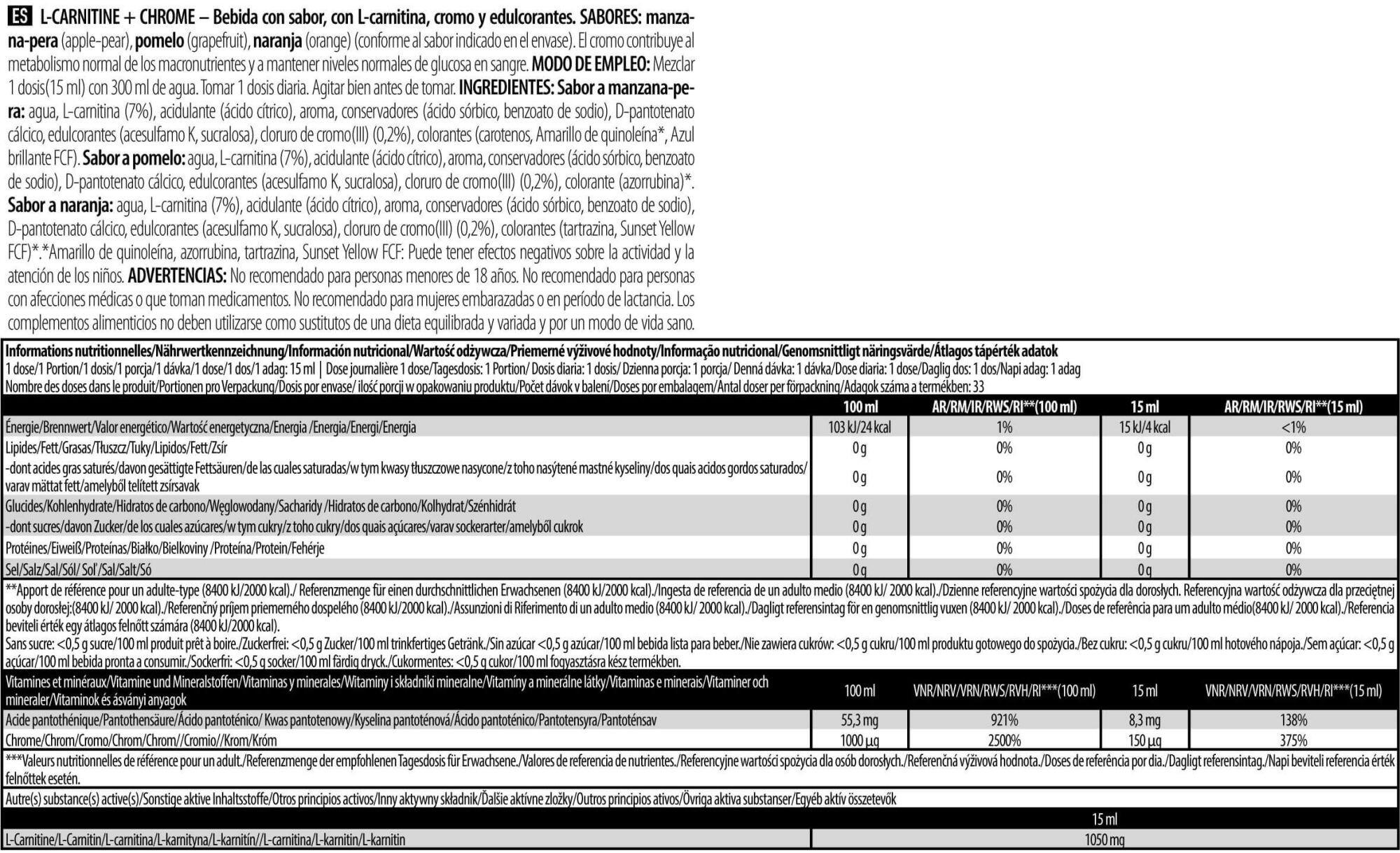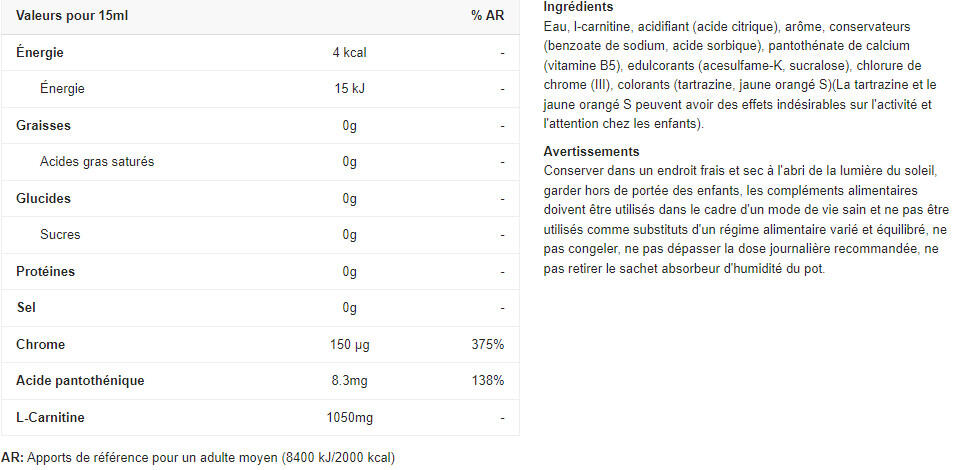 The L-Carnitine+Chromium formula is a perfect supplement, ideal for athletes wishing to control their weight. It also helps reduce fatigue thanks to the presence of vitamins.