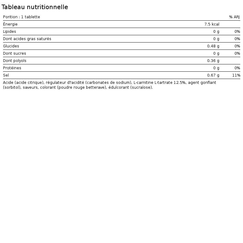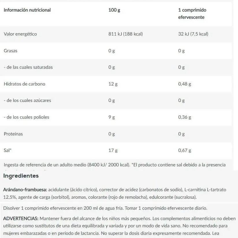 L-carnitine effervescent from Biotech USA will help you lose weight thanks to its 500 mg of carnitine. Its effervescent format is easy to dose and very tasty.