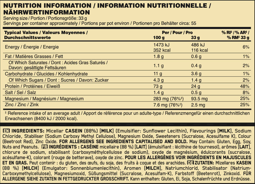 Supplementary food based on “slow” proteins in the form of micellar casein to support satiety and muscle anabolism.